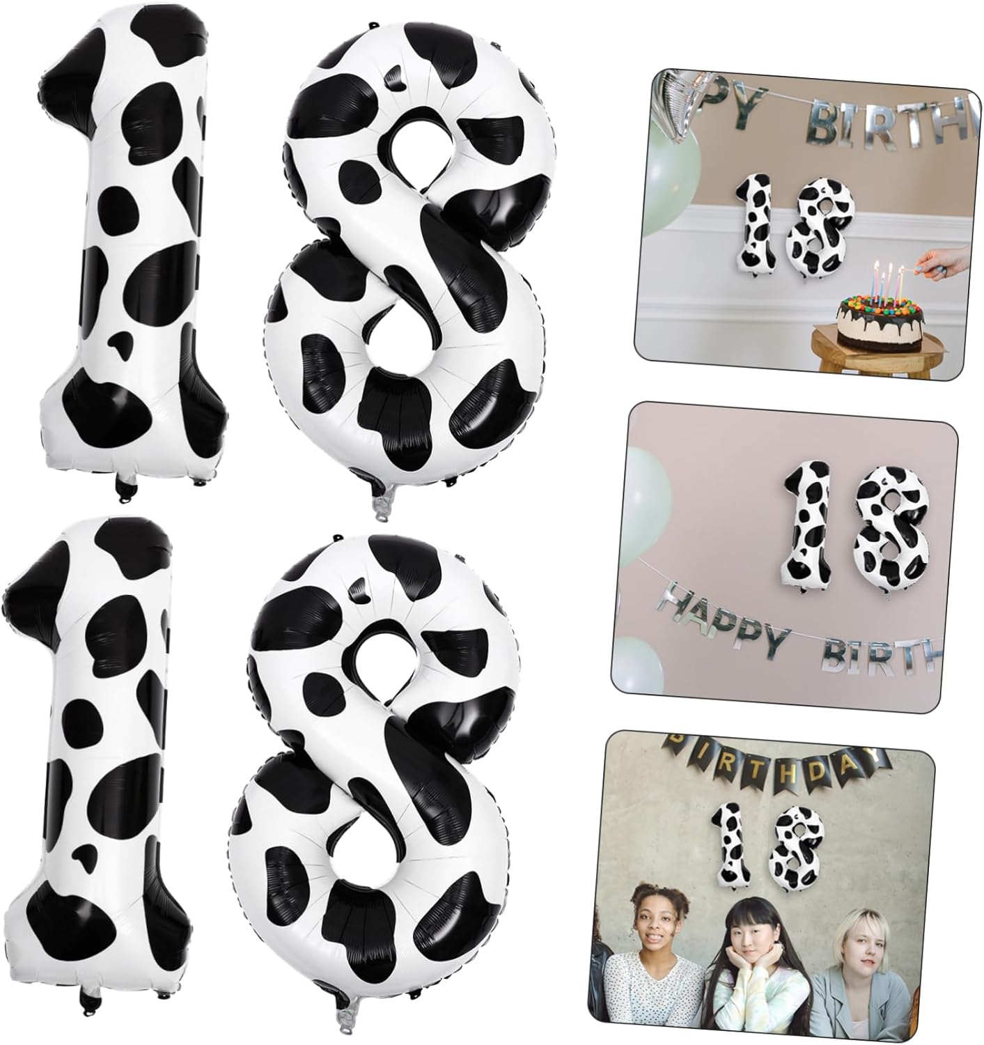 Palloncini per feste per la decorazione: puoi decorarli sul muro, porta, finestra, ecc., ampia gamma di applicazioni, buona esperienza d'uso, palloncini stampati con mucca Ornamenti per palloncini del 18esimo compleanno: creeranno un momento caldo e memorabile per il tuo banchetto di compleanno, facile da decorare e utilizzare, forniture per feste Palloncini stampati con mucca: il colore è ricco, naturale e pieno di senso della moda per aggiungere un'atmosfera da festival al carnevale, decorazioni per feste di compleanno Accessorio per la scena della festa: sicuro e pratico, forte e durevole, non devi preoccuparti che si strappino o si rompano quando gonfiati, decorazioni per palloncini Palloncini in foil: questi palloncini sono un'aggiunta per le vostre feste di compleanno, i vostri ospiti rimarranno impressionati dal vostro palloncino in foil ben disposto
