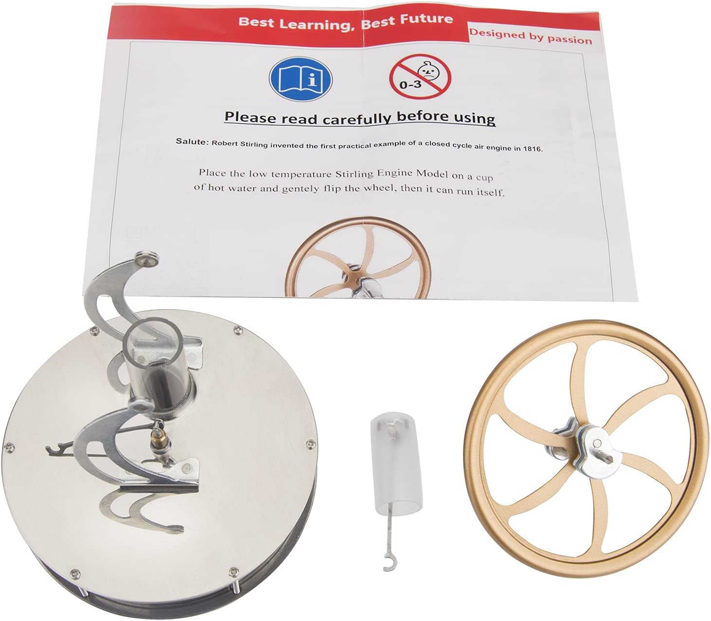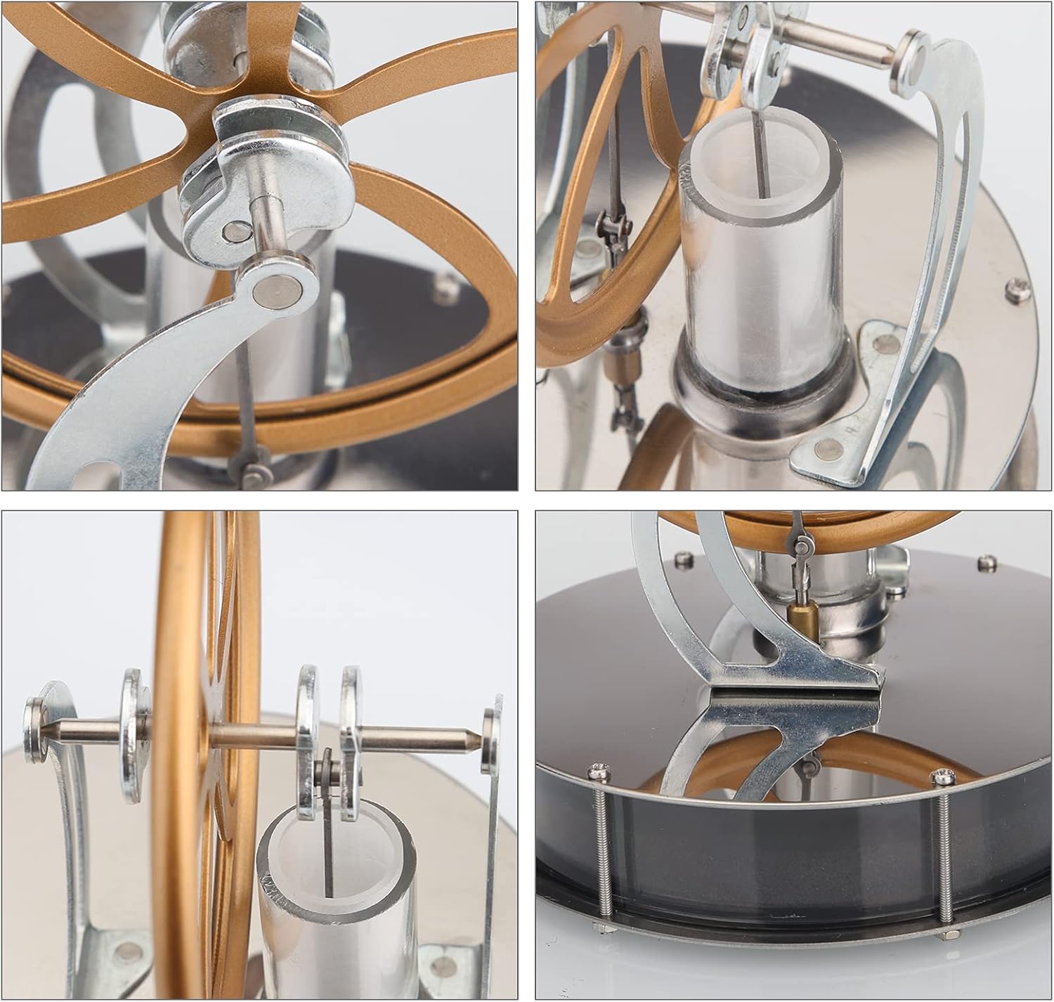 Alta qualità: il design è nuovo e l'aspetto è raffinato e bello. Il prodotto stesso è stato assemblato e può essere utilizzato direttamente per la sperimentazione. Facile da usare, posizionare una tazza di acqua calda, preriscaldare per 30 secondi a 1 minuto, girare il volano in senso orario per avviare, il motore ruoterà automaticamente. Parti premium: una selezione di materiali pregiati, ogni pezzo è realizzato con cura. La maggior parte delle parti della fusoliera sono realizzate con tecnologia di stampaggio e pressofusione in un unico pezzo. I due pannelli di base rotondi sono realizzati in acciaio inossidabile a specchio e brillano come uno specchio. Multiuso: il kit modello di motore Stirling ha una vasta gamma di applicazioni, regali di Natale, strumenti fisici di apprendimento automatico, oggetti di scena dimostrativi per insegnanti in classe, ecc. È molto adatto per l'uso per gli ornamenti della raccolta del desktop dell'ufficio Suggerimenti: Suggerimento L'albero motore e le bielle possono essere lubrificati con polvere di matita. Non lubrificare con olio. Una volta creato il grasso, c'è molto attrito e non può essere pulito.