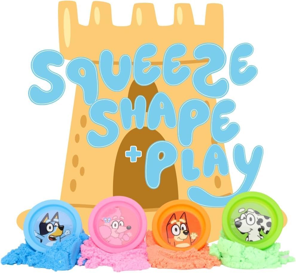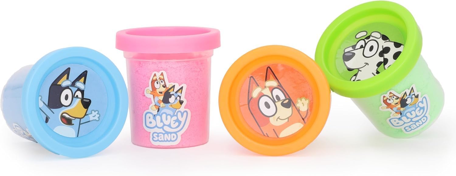 Stampa e gioca con i tuoi personaggi preferiti della serie TV: Bluey e Bingo! Contenuto: 4 contenitori di sabbia colorati, 4 stampi per personaggi, 1 tappetino da gioco lavabile e 1 scena di carte. Usa gli stampi forniti per infinite possibilità creative, sviluppando al contempo la coordinazione occhio-mano e le capacità motorie fini del tuo bambino. Il tappetino da gioco facile da pulire misura 40 x 40 cm (15,7 x 15,7") per un gioco sicuro e ordinato. Non adatto a bambini di età inferiore a 3 anni.