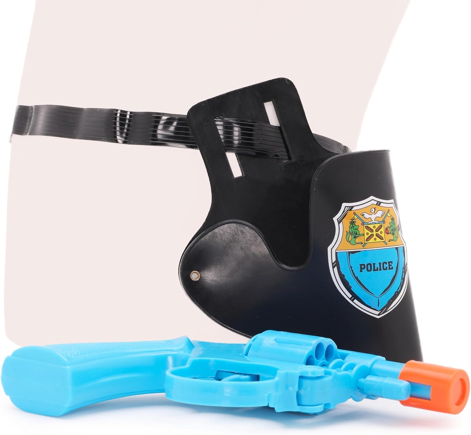 Preparati all'azione e all'avventura con questo set di costumi da polizia da 3 pezzi! Fantastico per i costumi della polizia e i giochi di ruolo! Un'idea di costume perfetta per i bambini dai 3 ai 6 anni. Premi il grilletto per 8 colpi di divertimento con questa pistola con cappuccio che misura 14 cm (5,5"). Include fondina con cintura per la pistola, cintura da 56 cm (22") e un paio di manette da gioco in plastica che si aprono e si chiudono con 2 chiavi di bloccaggio. Ideale per contenere tappi standard da 8 colpi per giochi di ruolo interattivi. Nota: tappi non inclusi.