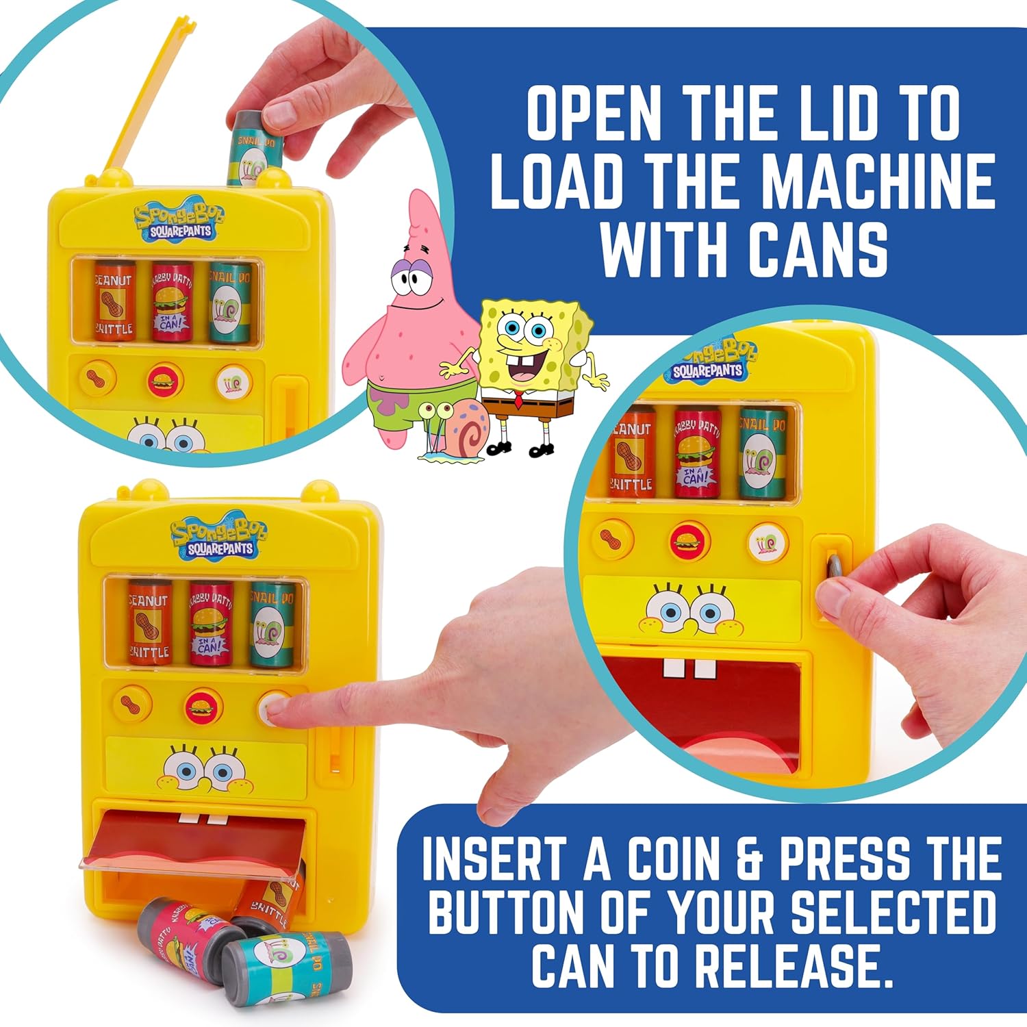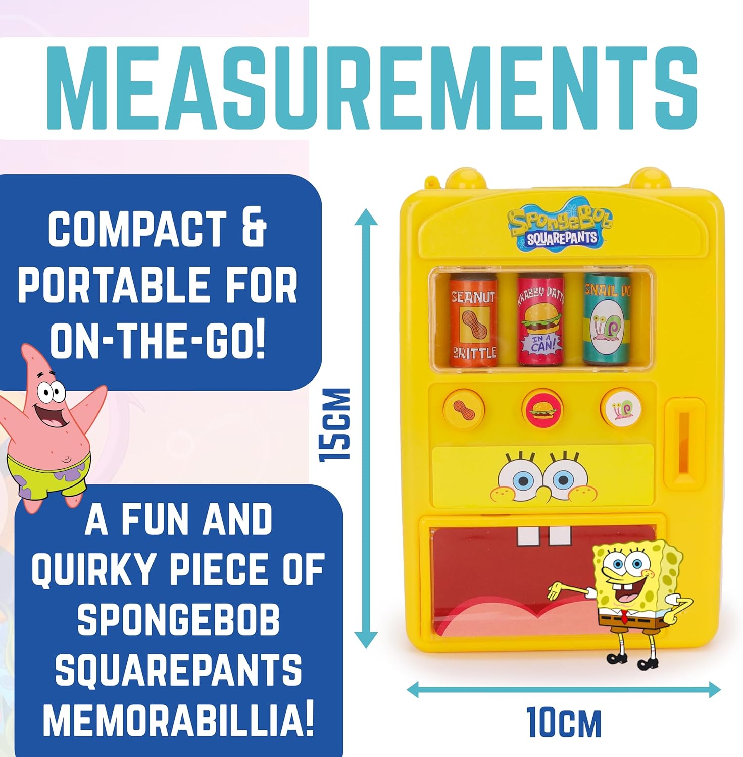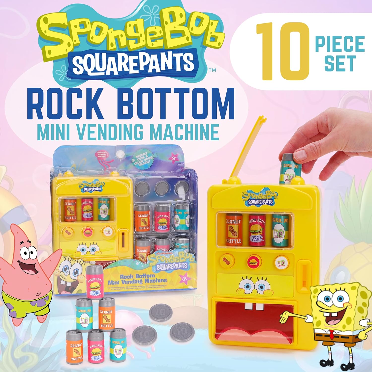Immergiti nello strano, selvaggio e meraviglioso mondo di Rock Bottom con questo esclusivo set da gioco ufficiale SpongeBob Squarepants con distributore automatico. Contenuto: 1 mini distributore automatico funzionale, 6 lattine di cibo e 3 monete. Chiamata a tutti gli amanti degli snack e superfan di SpongeBob Squarepants! Inserisci una moneta, premi un pulsante e guarda il tuo delizioso dolcetto cadere: il divertimento non finisce mai con questo stravagante distributore automatico Rock Bottom! Incoraggia anche il gioco di fantasia, la coordinazione occhio-mano e le capacità motorie fini. Il regalo perfetto o da collezione per ogni superfan di SpongeBob! Ideale per compleanni, festività o qualsiasi occasione speciale: questo divertente set da gioco porta un tocco di Bikini Bottom a ogni festa. Adatto a partire dai 3 anni. È richiesta la supervisione di un adulto in ogni momento - piccole parti - pericolo di soffocamento.