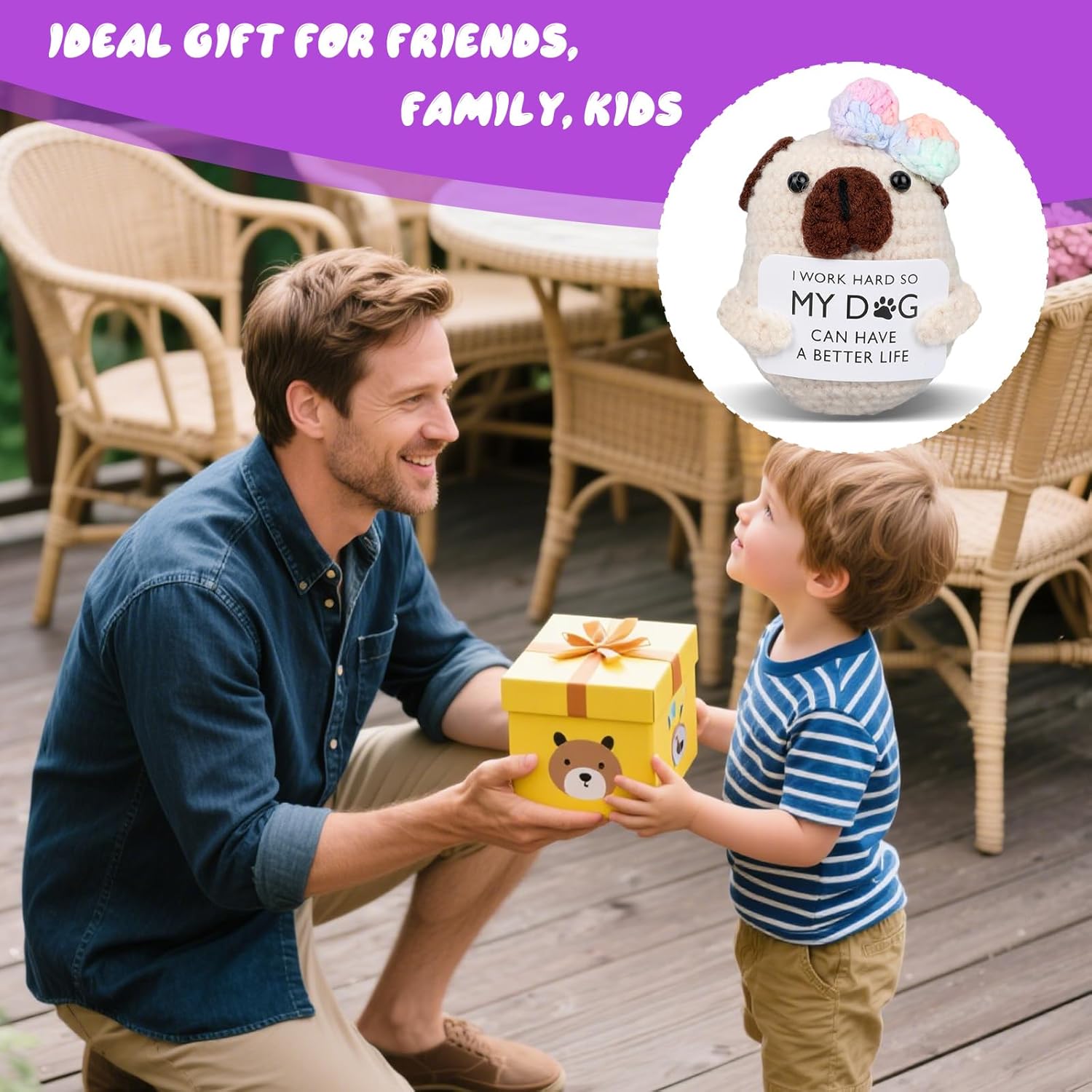 Prodotto incluso: riceverai 1 pezzo di adorabile giocattolo di Pug insieme a 1 carta motivazionale. Questo giocattolo per cani a maglia è progettato per illuminare la giornata e ispirarti a rimanere positivo e continuare ad andare avanti. Materiale premium: realizzato in cotone morbido e durevole, questa bambola per carlino all'uncinetto offre un tocco delicato. È accuratamente lavorato a maglia con precisione, risultando in una consistenza lussuosa e coccolosa. Non è soggetto a indossare o scolorimento, assicurando che possa resistere all'usura quotidiana senza perdere il suo fascino. Design adorabile: questo giocattolo per cani all'uncinetto presenta un design delizioso con un corpo a tutto tondo e un bowknot rosa e blu in testa. È accuratamente realizzato per catturare le adorabili caratteristiche del PUG, rendendolo una vera opera d'arte che sicuramente ti farà sorridere. Ampie applicazioni: questo giocattolo di carlino a maglia morbida può essere una graziosa decorazione da tavolo, aggiungendo un tocco di intimità alla scrivania o alla piattaforma. Le sue piccole dimensioni rendono facile da svolgere, sia per viaggiare che per spostarsi, è un compagno perfetto per portare conforto e un'atmosfera positiva. Regalo perfetto: questo simpatico giocattolo all'uncinetto per cani è perfetto per incoraggiare i colleghi, ispirare gli studenti, deliziare gli appassionati di animali domestici o semplicemente illuminare il giorno di qualcuno che ha bisogno di un po 'di incoraggiamento in più. Questo regalo premuroso trasmette il tuo amore e porta un sorriso in faccia.