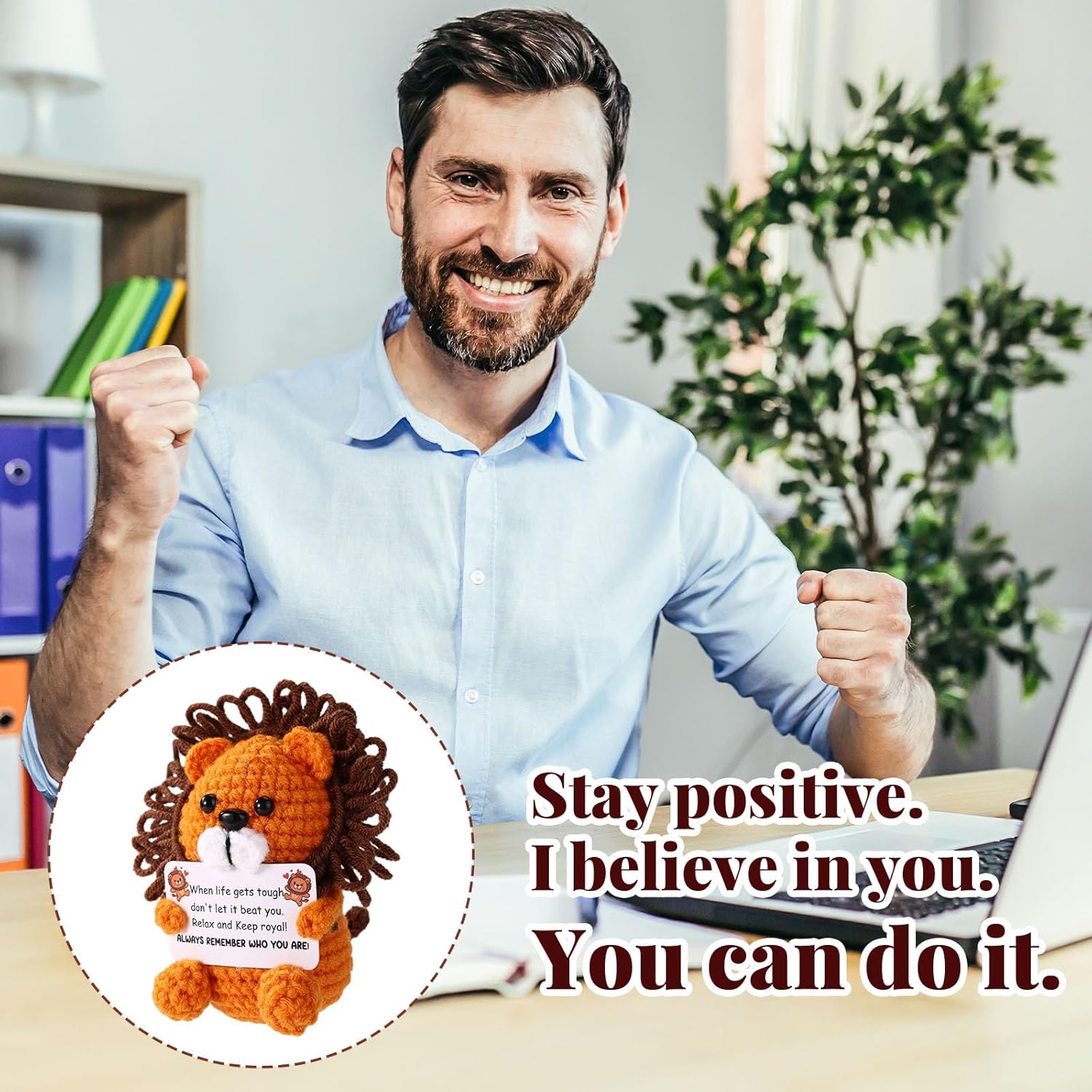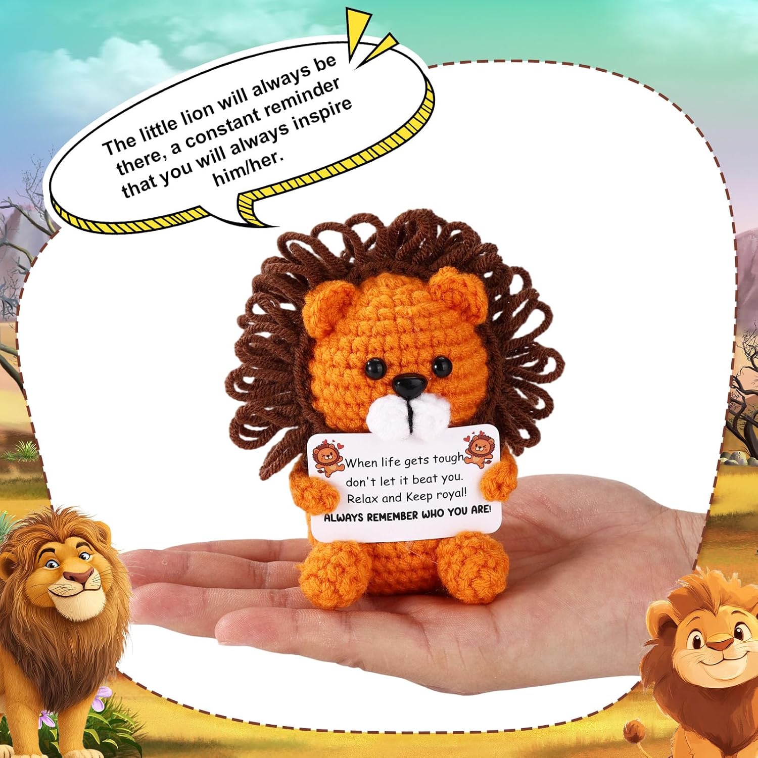 Prodotto incluso: riceverai 1 pezzo di leone positivo. Questo leone giocattolo fatto a mano all'uncinetto sarà sempre al tuo fianco, dandoti sostegno e diffondendo energia positiva. Materiale morbido: il leone positivo è realizzato in materiale di lana di buona qualità. È lavorato a mano con pregevole fattura e consistenza morbida. Il processo di tessitura stretto garantisce durata e nessuna deformazione. Puoi acquistarlo con fiducia. Dimensioni: il leone ispiratore misura circa 9x7x6 cm. Il suo design leggero e compatto è facile da trasportare e può fornirti energia positiva sempre e ovunque. Ampia applicazione: il leone positivo è perfetto per la casa, la scrivania dell'ufficio o la decorazione degli interni dell'auto, aggiungerà calore e personalità a qualsiasi spazio fornendo allo stesso tempo incoraggiamento e supporto in qualsiasi momento. Ottimo regalo: questo leone positivo è perfetto come regalo di ispirazione per donne, uomini, famiglia, amici o colleghi, lascia che questo piccolo leone sia al loro fianco in tutti i momenti difficili.