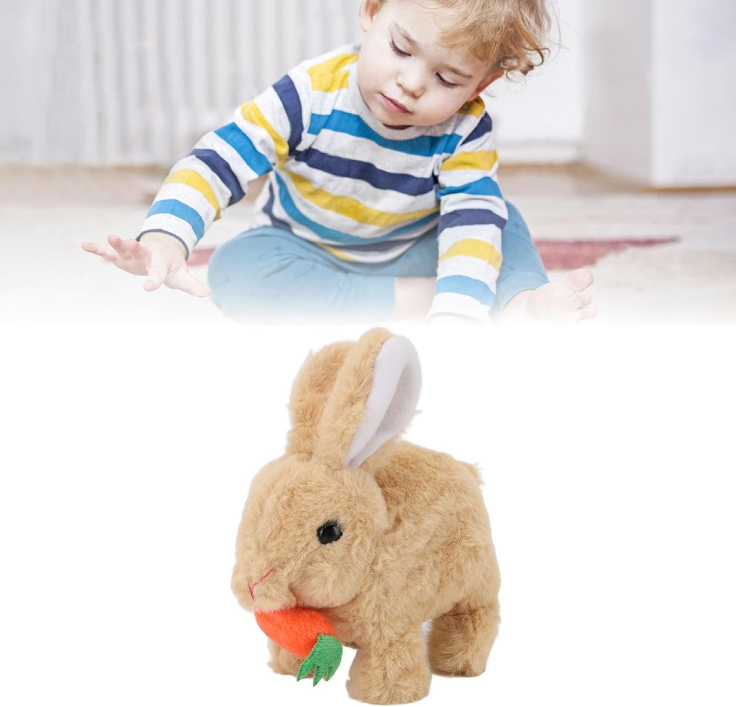 Regali degni di gioia: che si tratti di Pasqua, un compleanno o un trattamento a sorpresa, questo giocattolo di coniglietto porterà sicuramente gioia agli appassionati di conigli. Alimentato da 2 batterie AA (non incluse), è una deliziosa scelta per tutte le età. Design affascinante: sapientemente realizzato per assomigliare a un vero coniglio, questo peluche interattivo cattura il fascino di un coniglietto dal vivo. È il giocattolo ideale per i bambini amanti degli animali, che offre un'esperienza di gioco realistica e affascinante. Playmate portatile: con dimensioni di 16x17x10cm, questo giocattolo coniglietto elettronico è ideale per divertimento in viaggio. Le sue dimensioni compatte lo rendono un ottimo compagno di viaggio, permettendoti di avere gioia e avventura ovunque vadano. Sostituto per animali domestici ideali: ideale per la che desidera un amico peloso senza i requisiti di disordine o alimentazione. Questo giocattolo ben coniglietto offre la gioia della cura degli animali domestici in un pacchetto adorabile e realistico, offrendo una deliziosa esperienza per animali domestici. Movimenti realistici: guarda questo simpatico coniglietto e mette le orecchie proprio come un vero coniglio! Il suo movimento da masticare realistico e la pelliccia morbida e coccolosa forniscono ore di intrattenimento per te, rendendo il tempo di gioco sia divertente che coinvolgente.
