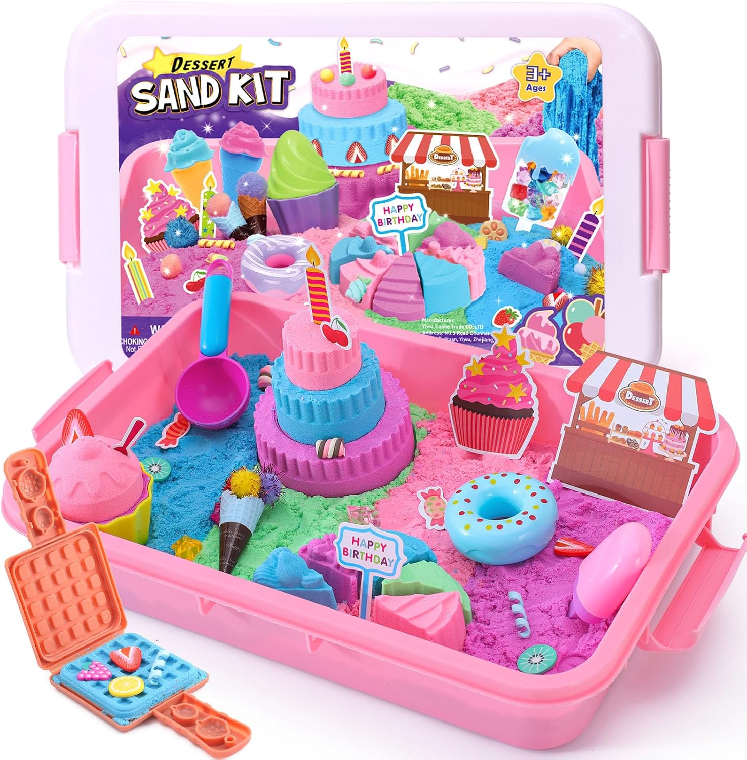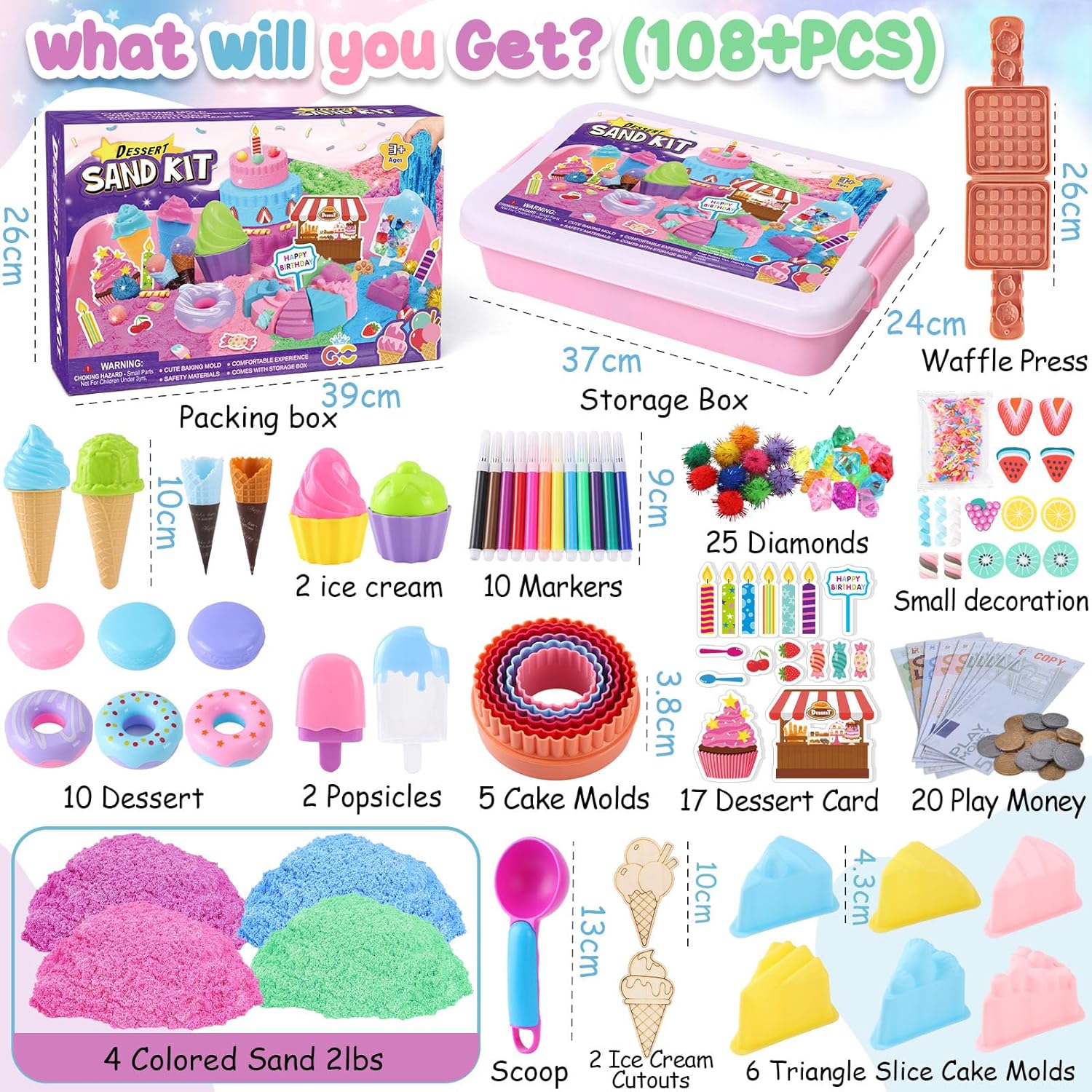 Set da Sabbia Cinetica - Il nostro set da sabbia magica per bambini della dessert viene fornito con 1 sandbox con coperchio, 900g sabbia per bambini a 4 colori, 15 stampi per dolci gelato waffle, 1 cucchiaio, 9 dessert, 2 gelato carta, 2 coni, 12 pennarelli acquerellabili, 15 diamanti, 10 pompon, varie decorazioni per gelato e torte e banconote e monete di diversi tagli. Divertente Gioco di Ruolo - Il nostro set di sabbia da gioco per bambini include soldi giocattolo, i bambini possono giocare a commessi che vendono dolci o clienti che comprano gelati. Giocare con il kit sabbia cinetica gelato può migliorare l'immaginazione e il pensiero creativo del tuo bambino, nonché sviluppare capacità motorie fini, coordinazione occhio-mano e relazioni sociali. Sensoriale Sabbia Bambini - La sabbia comprimibile "bagnata" ha la consistenza e la fluidità della sabbia normale e la plasticità della plastilina. Facile da modellare, antiaderente e non facile da asciugare. I bambini possono costruire la propria torta e gelati afferrando, spremendo e impastando la sabbia, il che è molto utile per usare la loro immaginazione e migliorare le loro abilità pratiche. Facile Pulire e Riporre - Questi giocattoli giochi spiaggia bambini sono dotati di sabbiera per bambini con coperchio. Il cestino sensoriale non solo permette al tuo bambino di giocare con la sabbia in casa, ma è anche facile da pulire e riduce notevolmente il disordine. Inoltre, può essere utilizzato come organizer per giocattoli per riporlo e trasportarlo facilmente. Regalo Ideale per Bambini - Il nostro set da sabbia cinetica bambini è il perfetto regalo bambina bambini 3 4 5 6 7 8 9 anni, offre ore di divertimento ai bambini. Perfetto per regalo compleanno, regalo Natale, regali Pasqua, regali Halloween, regali per il rientro a scuola e altro ancora. Fantastici giochi bambina bambini 3 4 5 6 7 8 anni.