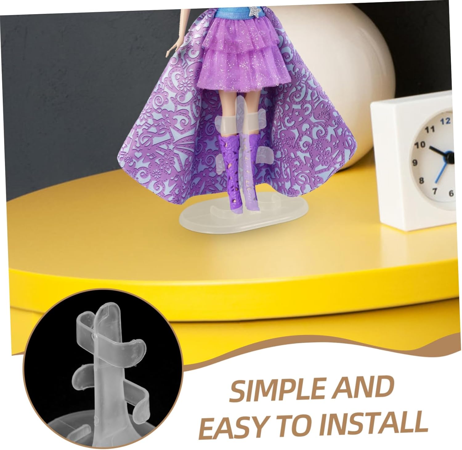 Supporto per bambole action figure: design creativo, con una base piatta e stabile per aumentare la stabilità, questo supporto può rendere le bambole adorabili e creative, supporto per bambole Telaio porta bambole: costruito con materiali plastici, questo supporto è costruito per resistere a deformazioni e deformazioni, durata e longevità, telaio di supporto per bambole Forniture per negozi di bambole: questo supporto versatile è progettato per ospitare una varietà di bambole, offrendo stabilità affidabile per tutte le tue figure da collezione, semplice portabambole Supporto per modello di bambola: l'installazione è semplice e semplice e non richiede strumenti aggiuntivi o complicate fasi di assemblaggio, supporto per display Supporto per bambole: invia il supporto per bambole come unico per i tuoi amici, a loro piacerà mostrare le loro bambole in un modo più semplice ma migliore, base per bambole all'uncinetto