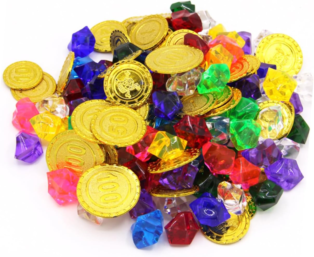 Monete - perfette per oggetti di scena, centrotavola, decorazioni per feste, decorazioni di halloween, scatole del , gioielli del , giocattoli di monete Giocattoli con monete: pietre e monete misti sono ottimi per i per il gioco di finzione dei pirati, assortimento di giocattoli educativi per tutte le età, giocattoli per ragazzi e giocattoli per ragazze, monete Giocattoli--la forma del diamante è un po' appuntita, fai attenzione, coin toys Sono realizzate in materiale con forti e vivaci, le monete d'oro utilizzano plastica ecologica con elevata lucentezza Ottima attività estiva al chiuso, ottima per le attività in campeggio
