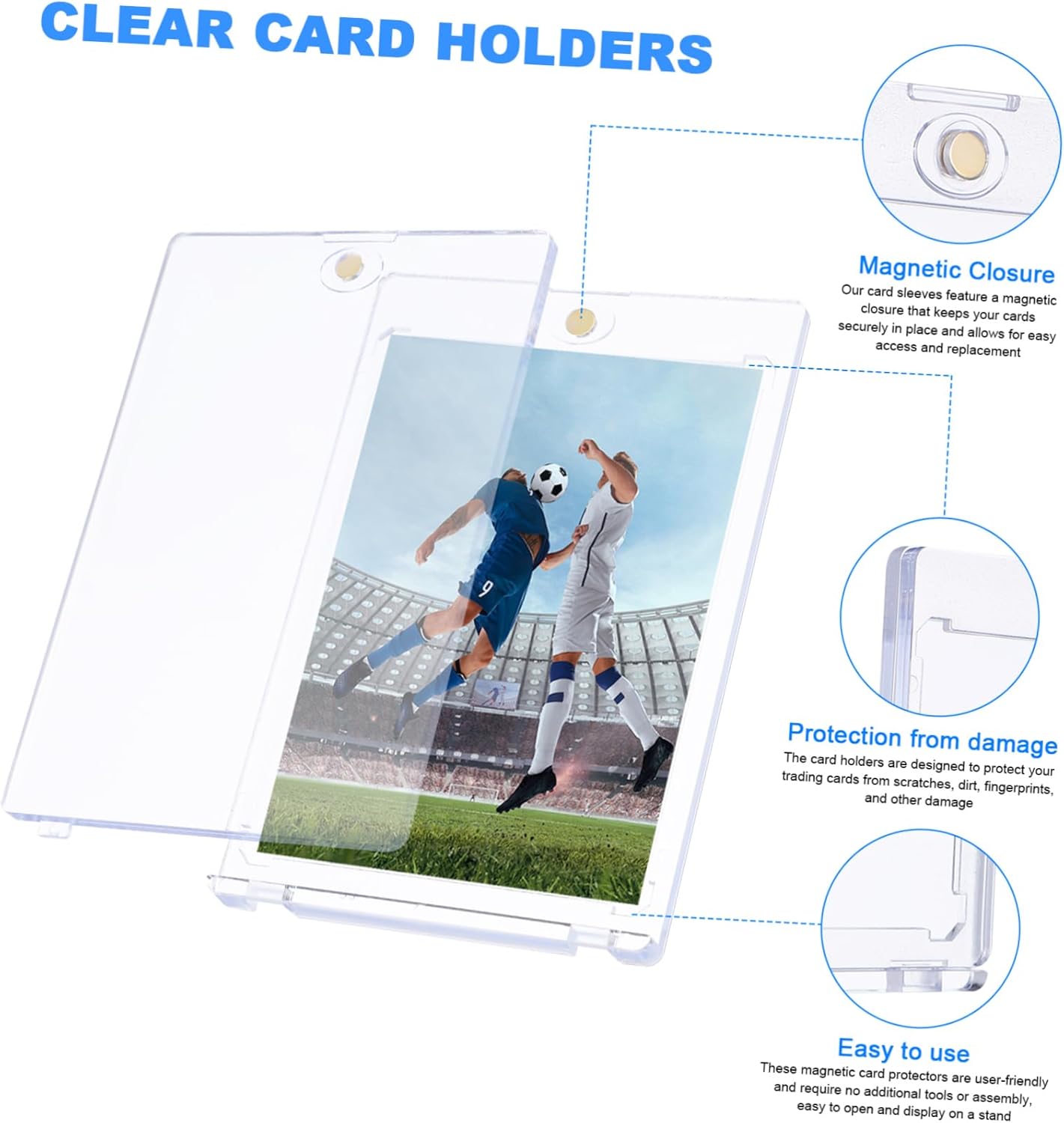 Custodia protettiva: i porta carte magnetici fungono da barriera, impedendo che elementi indesiderati entrino e danneggino le carte, protezioni trasparenti per carte, vetrina per carte Chiusura sicura: le nostre protezioni per carte forniscono una tenuta ermetica con una chiusura magnetica, impedendo che le carte fuoriescano o danneggino durante il trasporto, protezioni per carte rigide, custodia per carte da baseball Facile da usare: queste protezioni per carte magnetiche sono facili da usare e non richiedono strumenti o assemblaggio aggiuntivi, facili da aprire e visualizzare su un supporto, cornice per carte collezionabili, espositore per carte collezionabili Facile applicazione: inserisci semplicemente le tue carte collezionabili nel supporto e la chiusura magnetica le manterrà saldamente in posizione, ti consente inoltre di accedere facilmente alle carte, protezione per carte collezionabili, porta carte da basket Chiusura magnetica: le nostre custodie per carte sono dotate di una chiusura magnetica che mantiene le tue carte saldamente in posizione e consente un facile accesso e sostituzione, supporto per carte collezionabili, buste per carte anime