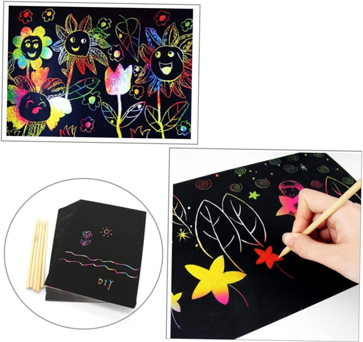 Carta per graffiti antigraffio: può sviluppare l'immaginazione e le potenzialità dei bambini, grattare la carta da disegno Carta da disegno antigraffio: i bambini possono creare opere d'arte colorate grattando via il rivestimento nero per rivelare i colori, grattando la carta da graffiti Carta antigraffio per bambini: per uso nella scuola e primaria, carta antigraffio Graffiare i graffiti: e grattare la carta per graffiti Gratta e vinci: un bel gioco per tenere tranquilli i tuoi bambini, gratta la carta per graffiti