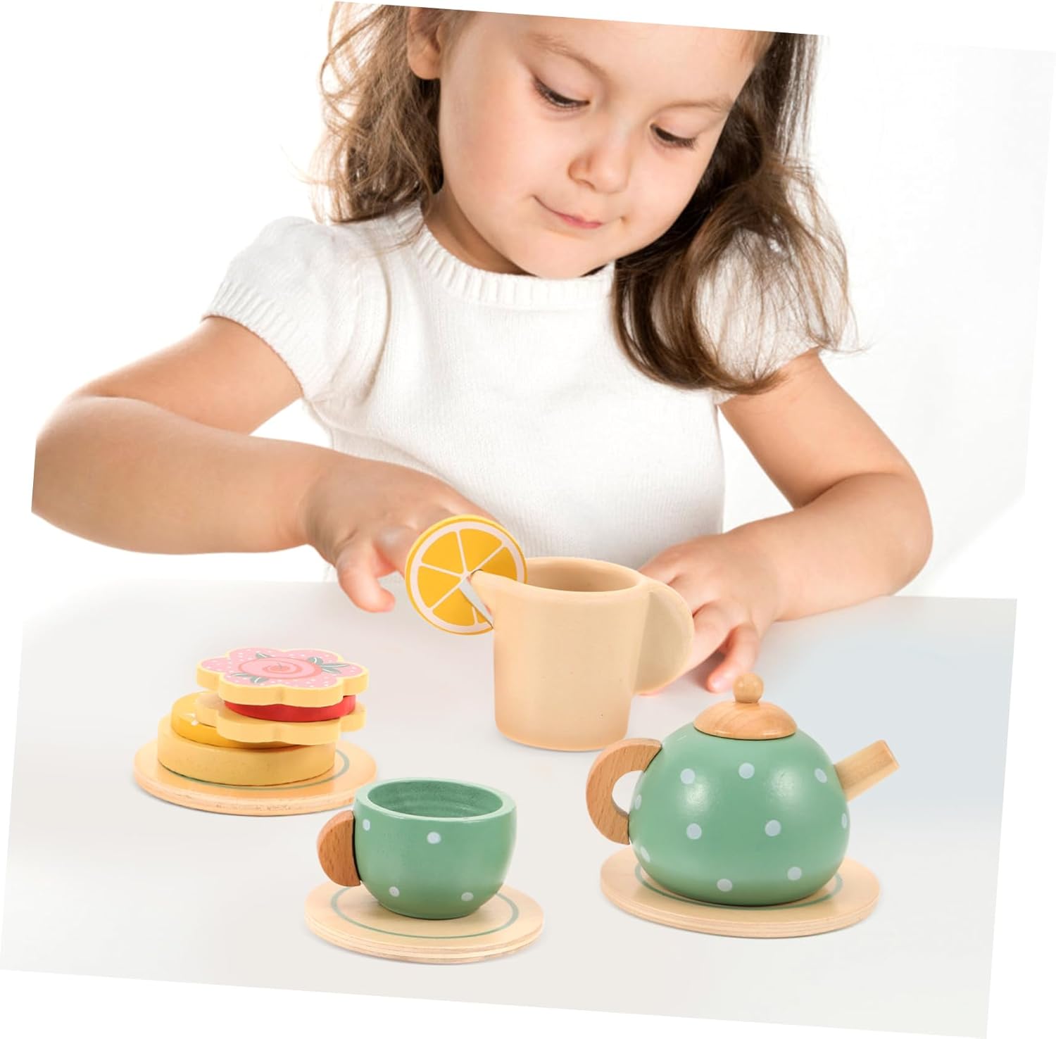 Stoviglie giocattolo per bambini: il set da tè per bambini è un regalo adatto per le vacanze per gli amici e puoi condividere il divertimento del gioco di ruolo finto con loro. Giocattoli per bambine: i bambini possono usare questo finto set da tè con altri piccoli ornamenti per creare un layout di scena perfetto. Decorazioni in miniatura: questo finto set da tè può migliorare le abilità di vita bambini, la coordinazione pratica, l'indipendenza e la fiducia in se stessi. Stoviglie per la casa in miniatura: design sofisticato, questo set da tè per bambini è realizzato con cura con dettagli vivaci, carino e adorabile. Decorazioni in miniatura: il set da tè finto è perfetto per riporre giocattoli, decorazioni per la camera, regali di compleanno e altre occasioni a tema oceanico.