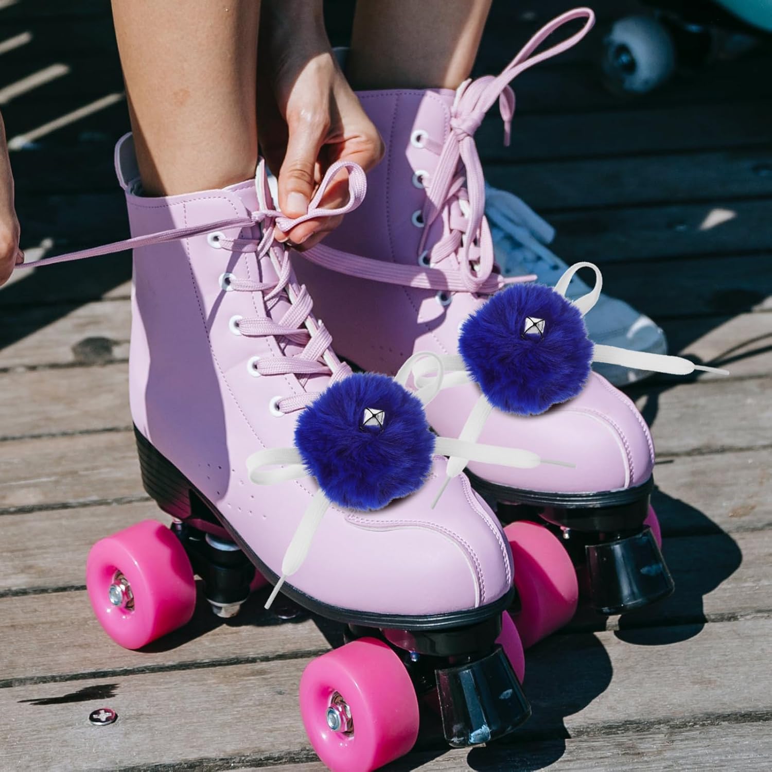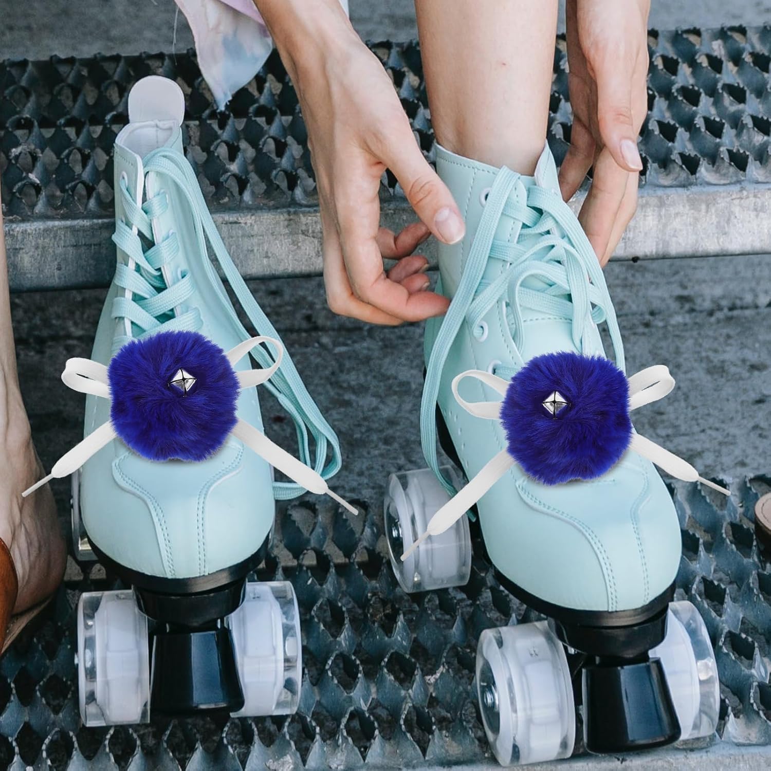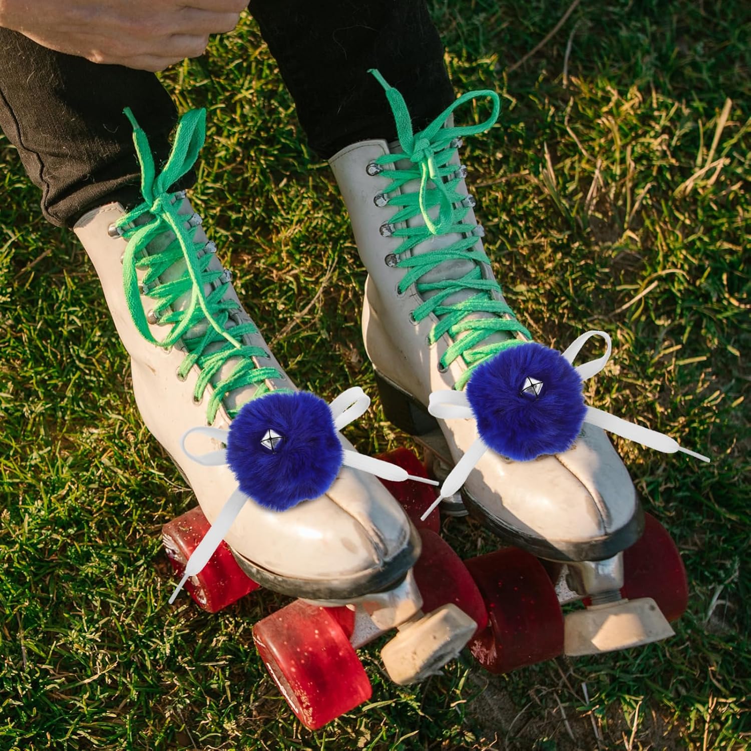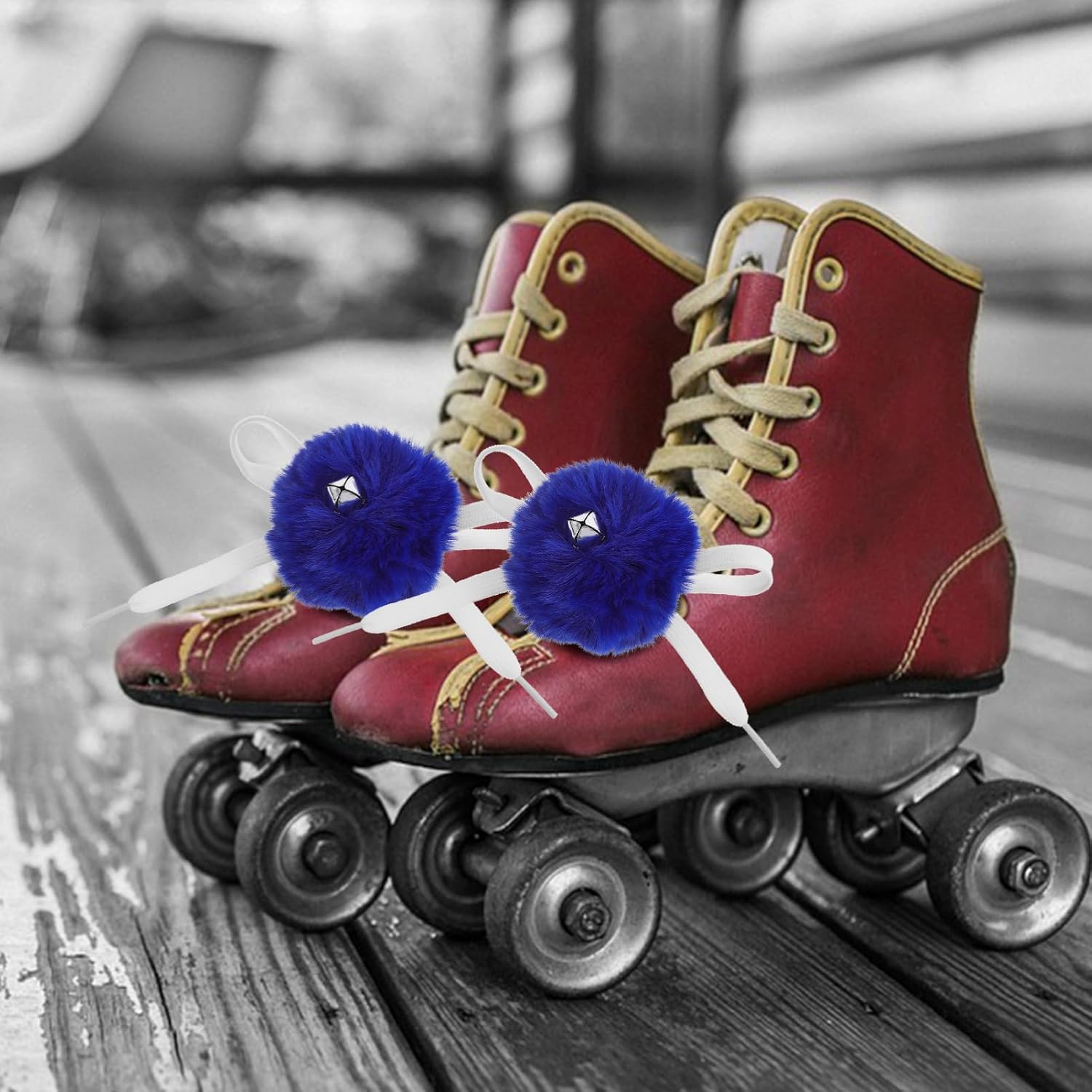 Palline soffici per pattini da ghiaccio: progettate con una campana sul pom pom, che può emettere un suono bellissimo, puoi distinguerti dal terreno ghiacciato. Pattini soffici palline - realizzate in materiale di lana artificiale, . pregevole fattura e bell'aspetto. Pon pon per pattini a rotelle: su questi pon pon sono presenti campanelli che possono emettere un suono nitido. Lacci per pattini da ghiaccio: saranno perfetti per scarpe da sci, scarpe da hockey, scarpe sportive, ecc. per creare il tuo stile. Palla soffice per pattini a rotelle: questi pon pon possono essere utilizzati per decorare la cintura del buco delle scarpe per controllare la tenuta delle scarpe.
