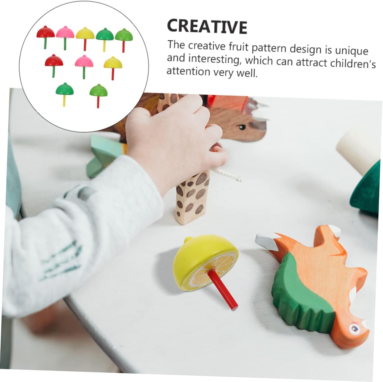 Trottole in legno che girano: il design creativo del motivo della frutta è unico e interessante, che può attirare molto bene l'attenzione dei , tops Filatura in legno colorato: avere un modo semplice di giocare può portare molto divertimento, peg tops Giocattolo per l'apprendimento precoce: la rotazione rapida può mostrare ai diversi effetti visivi e la coordinazione occhio-mano dei , tops Filatura in legno: realizzata con materiali in legno naturale, sicura, delicata e, giocattolo con trottole in legno Gioco di trottole: le trottole sollevano rapidamente, possono dare ai un diverso piacere visivo e stimolare la loro capacità di pensiero e creatività, trottole in legno per