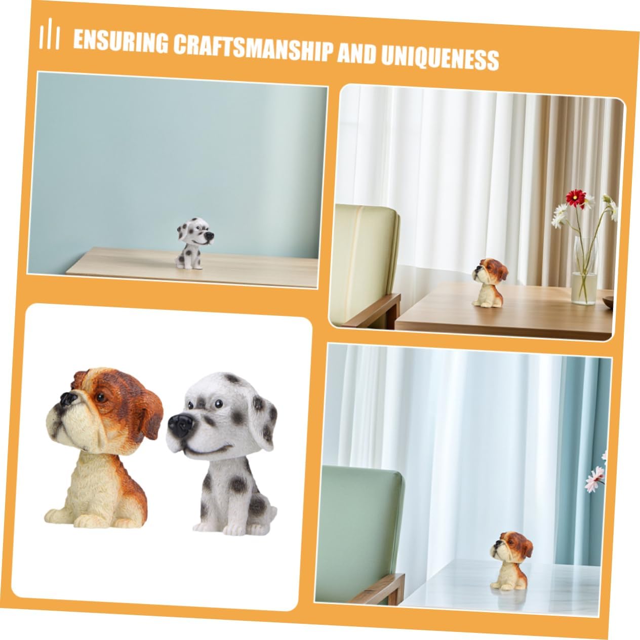 Adorabile artigianato: il di cane bobblehead è realizzato con dettagli carini e intricati, rendendolo un delizioso pezzo di arredamento Installazione senza sforzo: progettata per una facile configurazione, questo accessorio per interni auto può essere posizionato in modo rapido e sicuro sul cruscotto della tua auto Miglioramento dell'arredamento per la casa: ideale per vari punti della tua casa, questo ornamento aggiunge un elemento affascinante ed elegante al tuo arredamento Eccellenza artigianale: ogni pezzo è meticolosamente fatto a mano, riflettendo l'artigianato e l'individualità Opzione presente: questo ornamento è un premuroso e pratico per amici e familiari, ampiamente amato per il suo fascino decorativo