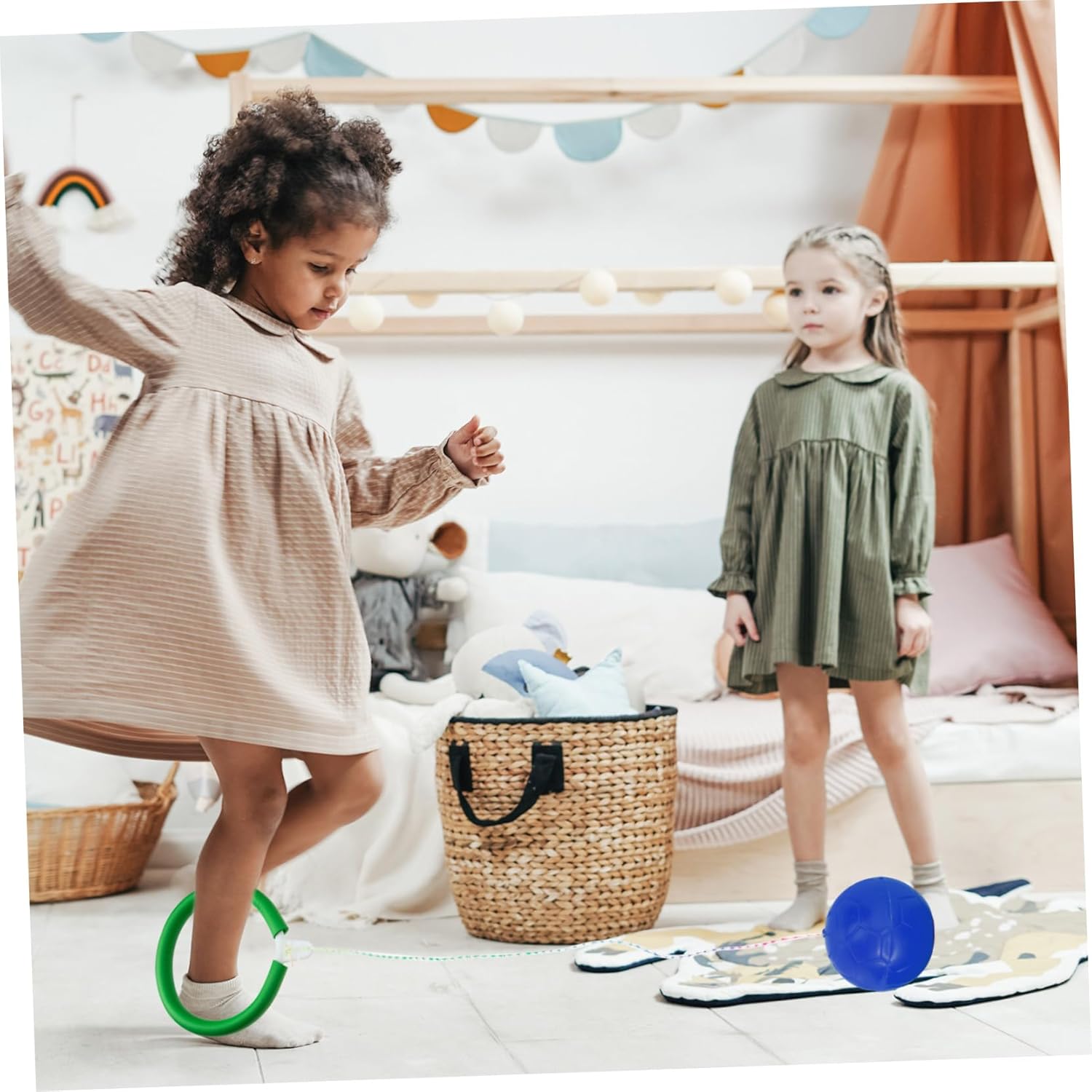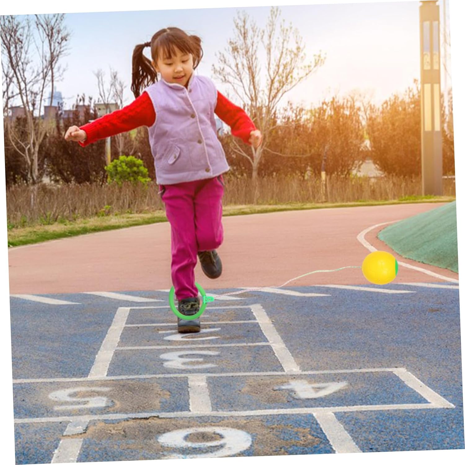 Facile da usare: consente il gioco interattivo e l'esercizio con un partner, migliorando l'esperienza, giocattoli da parco giochi, corde per saltare con palla a cerchio per il fitness della caviglia Comodo: il design esclusivo dell'anello alla caviglia incoraggia il salto con un solo piede, aggiungendo un ulteriore livello di sfida alla tua routine di allenamento, palla da salto con anello per i piedi, palla da salto Pratico e versatile: il set include, che ti consente di divertirti con un gioco interattivo e di fare esercizio con un o un familiare, palla da ginnastica per , giocattoli saltanti Divertente: questo prodotto è progettato per essere divertente per tutte le età, il che lo rende un'ottima scelta per gite in famiglia e attività di fitness, corde per saltare con palla a cerchio per cavigliera da fitness, attrezzature per parchi giochi all'aperto Innovativo: il design dell'anello alla caviglia aggiunge un tocco, incoraggiando gli utenti a saltare su un piede per un'attività extra, palla da salto per attività all'aperto, palle da salto