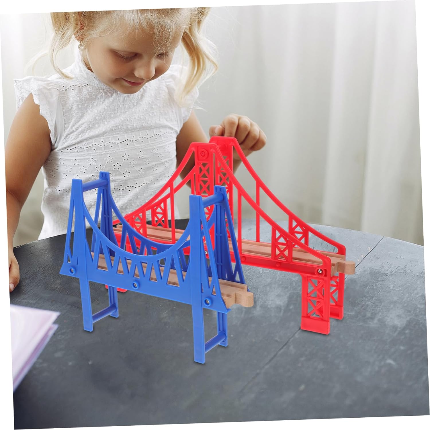 Giocattolo ponte: durante il processo di assemblaggio, sono state sviluppate anche capacità pratiche, ponte di dei binari del treno Giocattolo del ponte ferroviario: il materiale è sicuro e leggero, resistente all'usura e pratico per un uso duraturo, di ponte ferroviario Di ponte fai da te: realizzato in plastica che offre stabilità e durata, molto duro e liscio per l'uso, ponte del treno giocattolo Giocattoli didattici: superficie arrotondata e lucidata, non ferirà le durante il gioco, il giocattolo divertente è adatto come per le feste, di ponte decorativo Prop di layout della scena del treno: presenta dimensioni compatte e un design leggero, che è comodo da giocare e da realizzare, ponte ferroviario decorativo