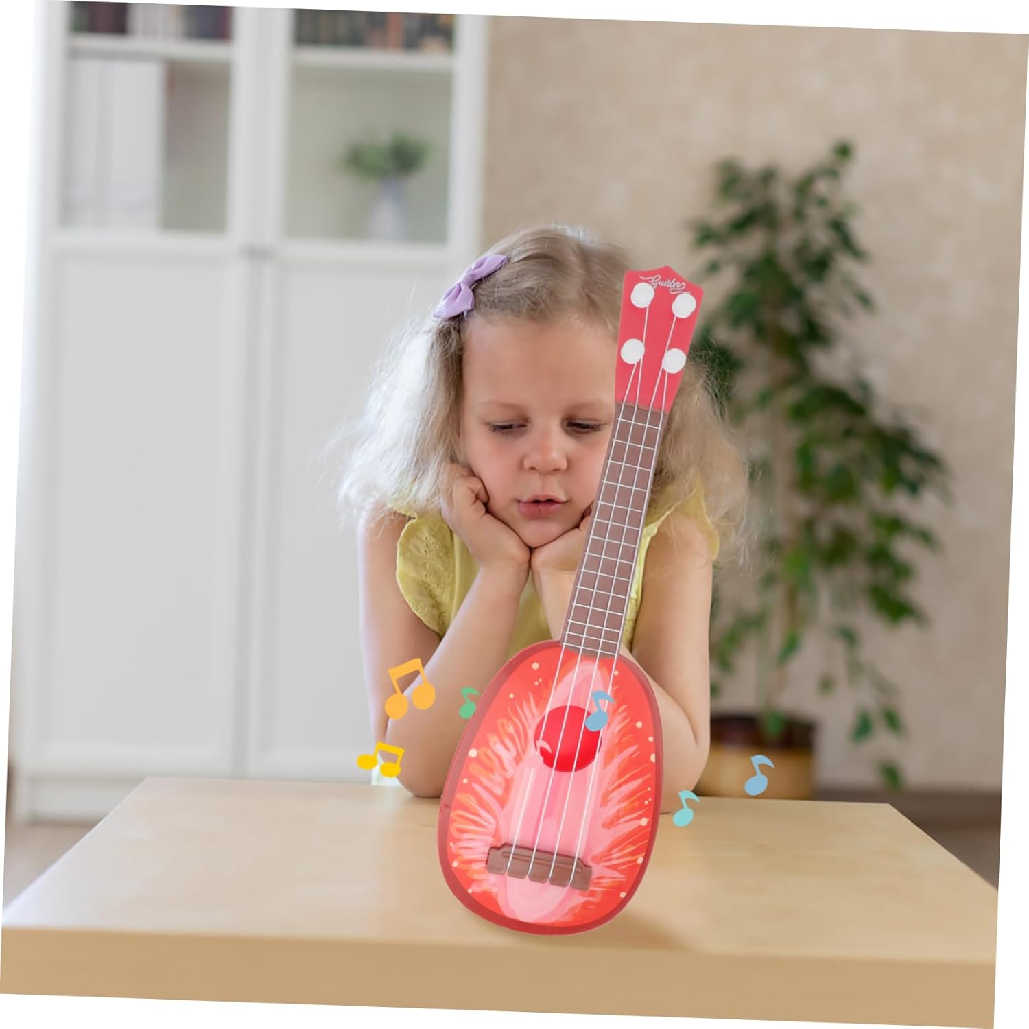 Chitarra per : realizzata in materiale plastico, questa chitarra giocattolo simulata è pensata per un uso duraturo, giocattolo per ukulele per l'apprendimento precoce Giocattoli per chitarra: sono facili e comodi da usare e facili da riporre quando non vengono utilizzati, giocattolo per chitarra in plastica Giocattoli educativi con strumenti musicali: realizzati artigianalmente e con una lavorazione squisita, non faranno male alla mano del quando suona, di chitarra in plastica Giocattolo chitarra per : ha un aspetto eccellente e squisito, può essere utilizzato come , decorazione per la casa, ornamenti decorativi da collezione, giocattoli di simulazione di ukulele Modelli di strumenti musicali: il di chitarra giocattolo con squisita fattura artigianale e aspetto realistico, giocattolo di imitazione della chitarra