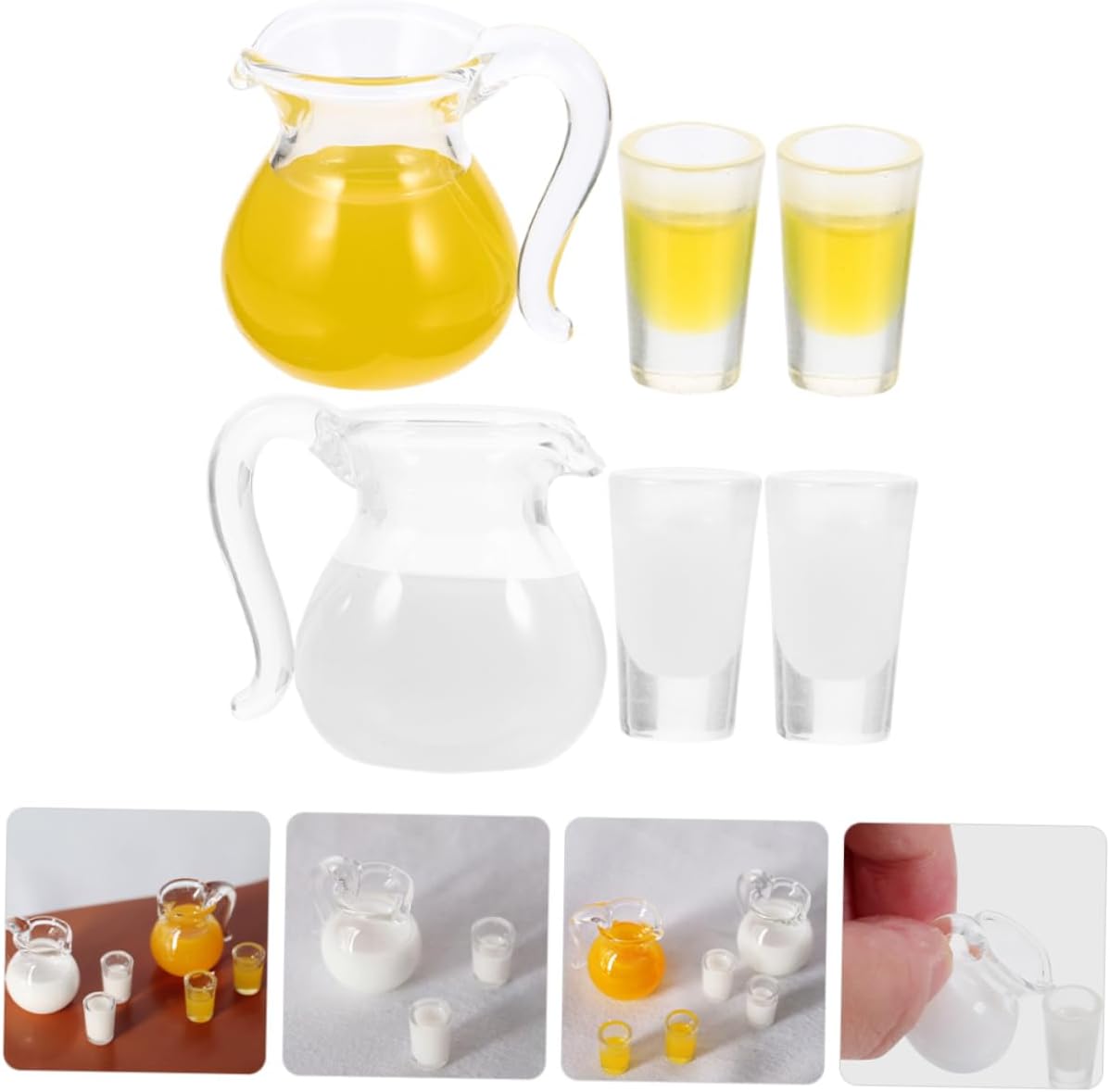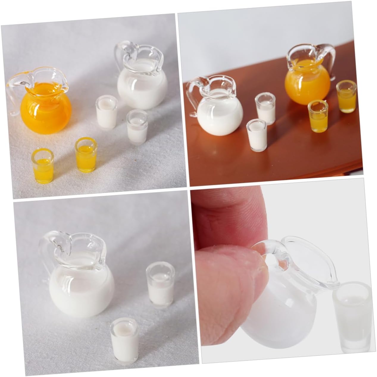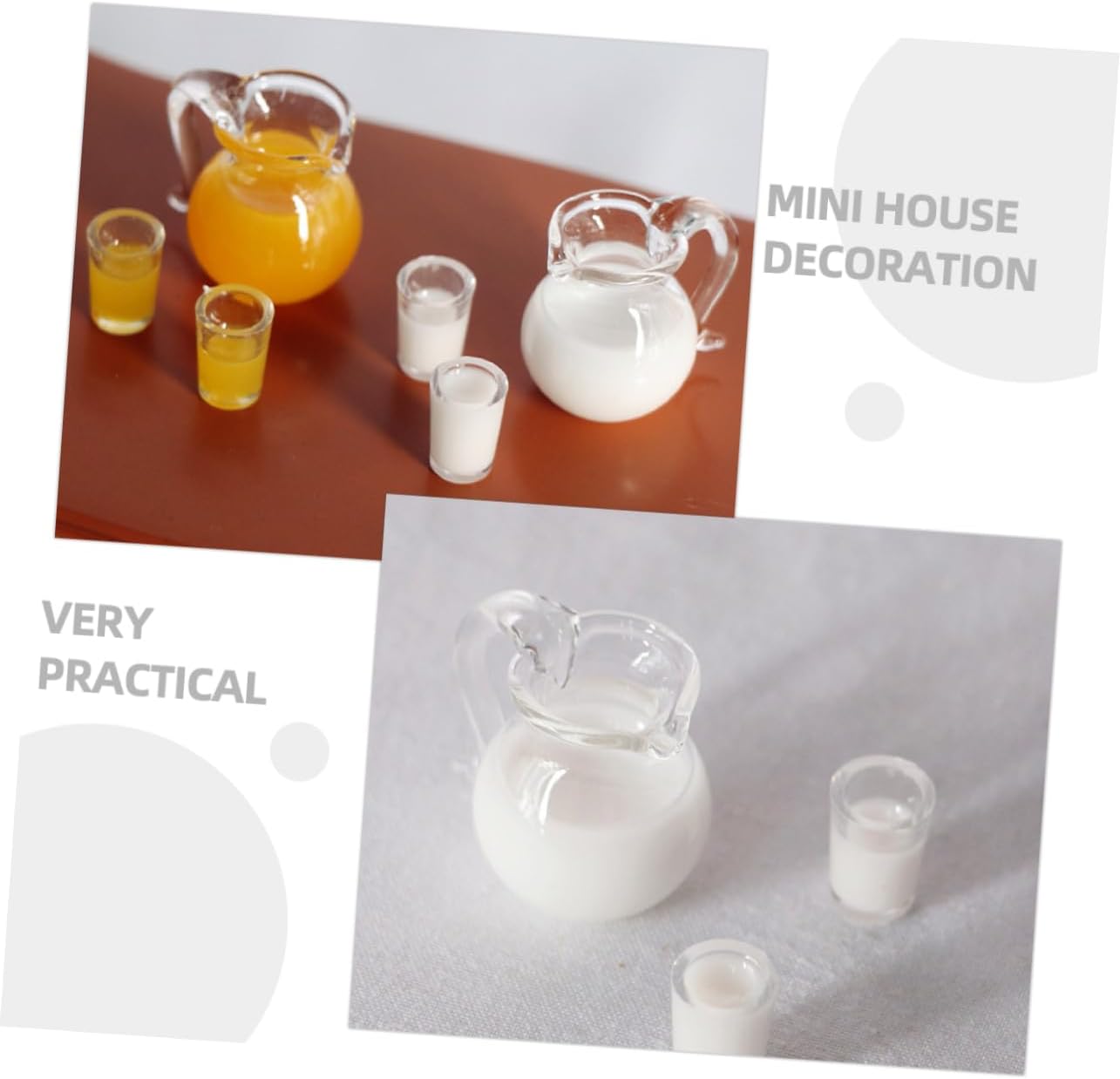 Brocca per casa delle bambole: puoi utilizzare questo modello in miniatura per aggiungere più dettagli di vita alla tua mini casa, rendendola più raffinata e delicata, miniature delle case delle bambole Mini tazza: realizzata in resina che caratterizza per stabilità e durata, molto dura e liscia per l'uso quotidiano, modelli di succo in miniatura Mini accessori per la casa: design del modello mini tazza e brocca, sembra molto speciale e delicato, un buon ornamento per mini casa, accessori per casa delle bambole Accessori per la casa in miniatura: il mini bollitore e l'ornamento della tazza sono realizzati in materiale di resina con lavorazione delicata e buon effetto decorativo, bollitore in miniatura Succo in miniatura: progettati specificamente per scene in miniatura, questi accessori sono incredibilmente realistici e adorabili, fingi di giocare