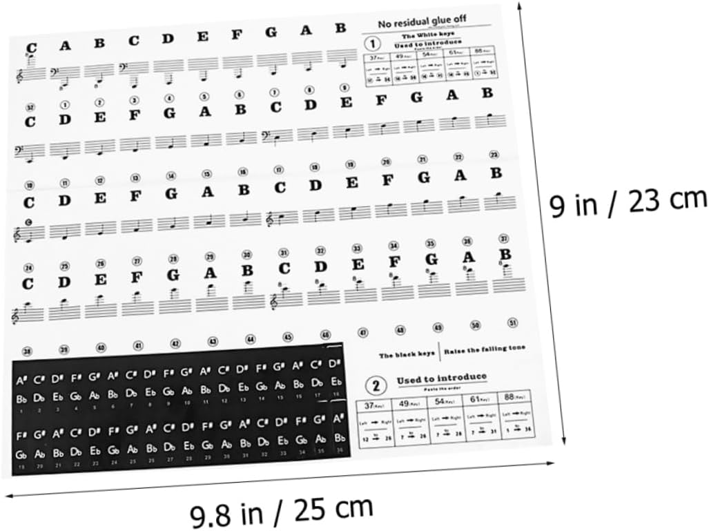 Etichette adesive per pianoforte: adesivi rimovibili per i tasti del pianoforte: i colori brillanti rendono più divertente per i bambini esercitarsi. tecnologia più sottile, più vicina alla sensazione reale della tastiera. Pianoforte: adesivi con note musicali in bianco e nero: lo rivestito impedisce all'inchiostro di sbiadire. la lettera stampata sotto lo superiore. Adesivi con accordi di pianoforte: quando suoni il pianoforte, difficilmente senti la loro presenza. Etichette per tasti per pianoforte: il miglior per principianti di pianoforte, ti aiuta a trovare rapidamente la chiave giusta. Adesivi per note di pianoforte: resistente rivestito può impedire lo sbiadimento dell'inchiostro. la lettera stampata sotto lo superiore.