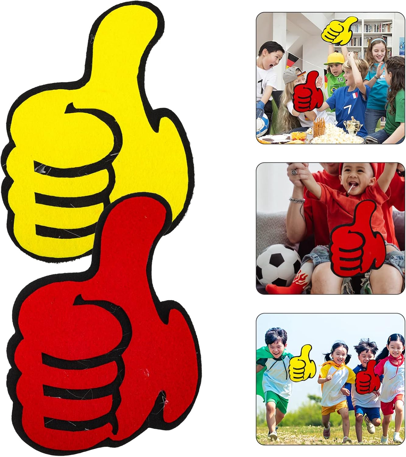 Arredamento : con una buona consistenza, facile giocare e facile riporre, l'ornamento con il pollice in su sarà la tua buona scelta. Forniture per feste sportive: possono essere utilizzate in una varietà di luoghi per aumentare l'atmosfera del luogo. Marionette dito: gli ornamenti sono realizzati in pvc, super morbidi e confortevoli, adatti alla maggior delle persone. Oggetto di allegria: mostra il tuo spirito di squadra grazie a questi ornamenti con il pollice in alto vivaci, pieni di creatività e divertimento senza fine. Decorazione : efficace, puoi acquistare questi ornamenti con un . materiale in feltro, il colore non sbiadirà facilmente.