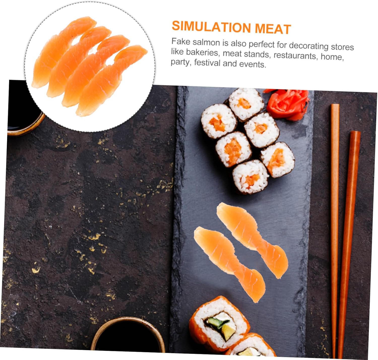 Accessori per cibo da festa: il cibo realistico è adatto per la decorazione della cucina, per la decorazione di ristoranti, negozi, giochi di ruolo, ecc., giocattoli con modelli di cibo Cibo artificiale realistico: colore, superficie e dimensioni realistici, il salmone decorativo realistico sembra proprio come quello , di carne finta realistica Cibo finto per dessert: il nostro salmone artificiale è la decorazione perfetta per la tua casa, la cucina, la festa del festival, la festa a tema o come oggetto di scena per foto, esposizione di cibo finto Mostra cibo finto: il salmone artificiale è fatto di pvc, che non sbiadisce e appare luminoso e lucente per lungo tempo, cibo giocattolo realistico Carne di plastica realistica: compatta e leggera, le nostre decorazioni di salmone simulato ti consentono di metterlo sulla frutta come decorazione, cibo finto