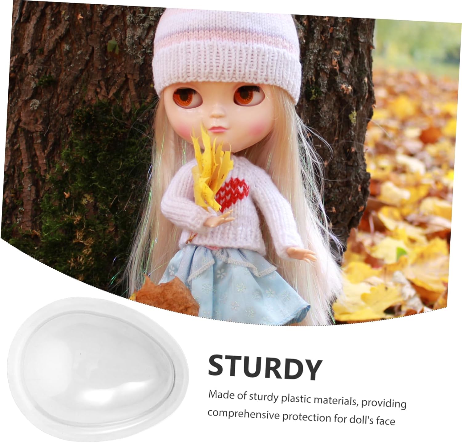 Protezione per il viso della bambola: progettata appositamente per le bambole, questa maschera protegge efficacemente il trucco e le ciglia della bambola danni Trucco e manutenzione: può essere indossato durante l'applicazione del trucco della bambola per evitare che i cosmetici macchino il viso della bambola, garantendo un aspetto pulito e ordinato Leggera e confortevole: realizzata con materiali plastici, questa maschera è leggera e confortevole, garantendo non grava sulla bambola Realizzato in plastica: pratico per un uso a lungo termine. Il design chiaro ti offre la visione, mantenendolo anche in buone condizioni Utilizzo versatile: oltre a proteggere il trucco e le ciglia della bambola, può essere utilizzato anche per la manutenzione e l'esposizione della bambola