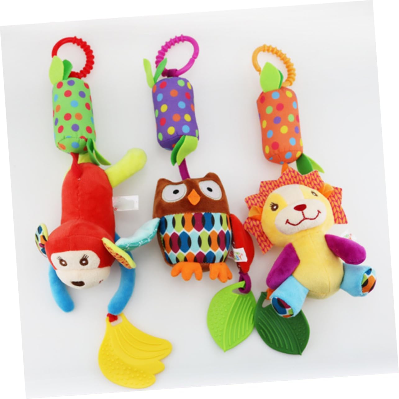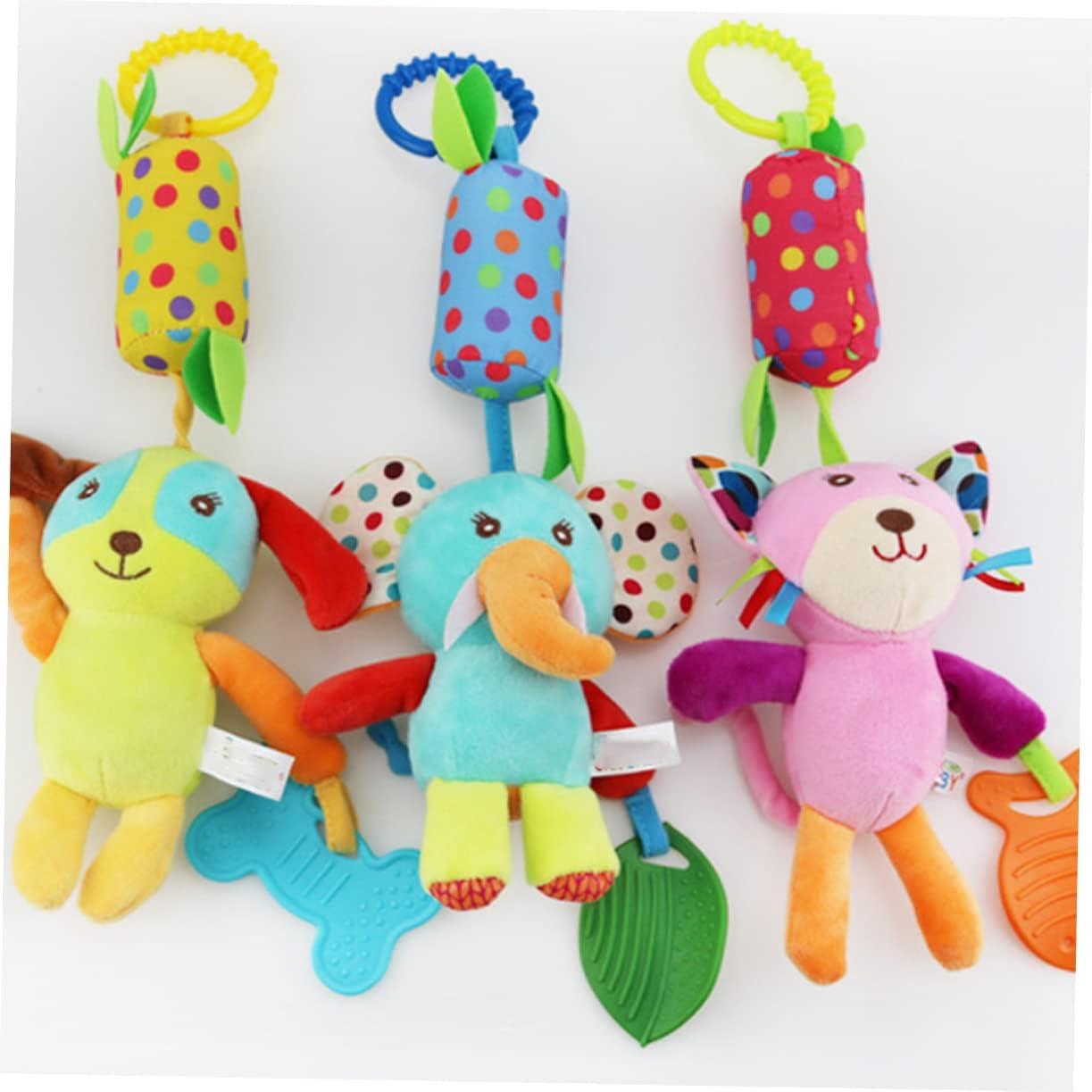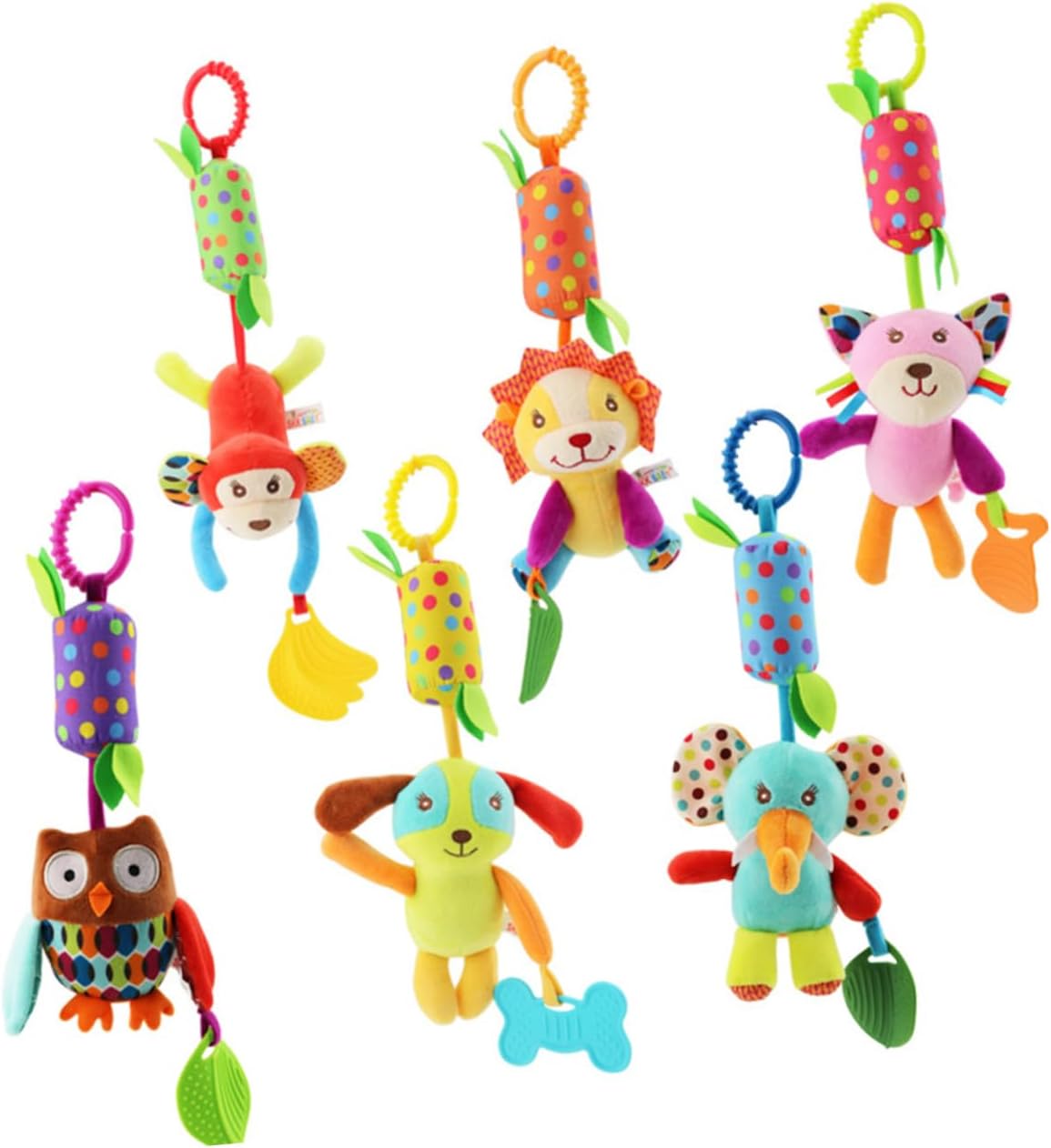 Giocattoli per bambini: facili indossare o smontare seggiolini , passeggini, carrozzine e letti. Giocattolo sonaglio per bambini: può emettere un suono morbido, accogliente e rilassante agitando delicatamente, aiutare i genitori a giocare con i bambini e aiutare a promuovere i uditivi bambini, nonché la capacità muscolare e di presa. Campane rotanti: giocattoli sostitutivi perfetti per tappetini gioco, set pavimento. un perfetto giocattolo del primo anno per il bambino, regalalo come regalo speciale per baby shower, compleanno, festa bambini Giocattoli animali: 4 diversi modelli di animali che includono elefante, gufo, cane e leone. colori brillanti, design e motivi ad alto contrasto aiutano a stimolare le capacità visive del bambino