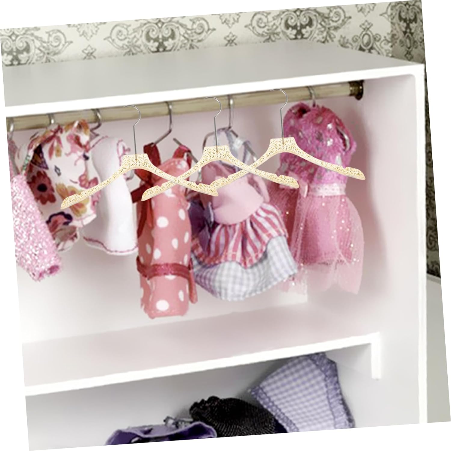 Accessori per bambole: caratterizzati da un design elegante e compatto, questi ganci sono facili da riporre e trasportare, occupando spazio minimo nella casa delle bambole, espositore per manichini Grucce per bambole: ideali per gli appassionati di case delle bambole, queste grucce forniscono un negozio di vestiti per bambole ordinato e organizzato, migliorando l'esperienza complessiva della casa delle bambole, armadio per vestiti per bambole Gruccia per bambole: queste grucce sono dimensionate per mini bambole da 6 pollici, garantendo che i loro vestiti rimangano ordinatamente disposti e facilmente accessibili, rendendo il tempo di gioco più piacevole e organizzato, organizzatore di vestiti per bambole Grucce per : il design traspirante consente un'asciugatura rapida dei vestiti delle bambole, aggiungendo un tocco pratico e funzionale alla tua casa delle bambole, artigianato con grucce Gancio per bambola: il set comprende cinque grucce, offrendo ampio spazio per appendere una varietà di vestiti per bambole, mantenendoli ordinati, gruccia per gonna per bambola