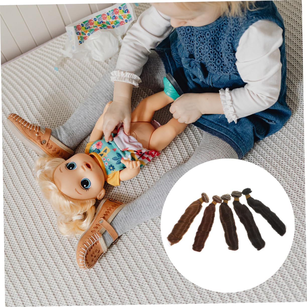 Resistenti calore: realizzate con fibre ad alta temperatura, queste parrucche per bambole possono resistere agli strumenti per lo styling, offrendo flessibilità nella creazione di look diversi. Fissaggio sicuro: progettate per aderire perfettamente alla testa della bambola, queste parrucche garantiscono una vestibilità sicura dei naturali, riducendo il rischio di caduta. Morbida e leggera: i materiali utilizzati sono delicati e leggeri, garantendo il comfort della bambola e prevenendone qualsiasi deformazione nel tempo. Opzioni di : disponibile in un'ampia di colori, che consente di abbinare qualsiasi stile o preferenza, esaltando l'unicità della bambola. Manutenzione semplice: facilmente lavabili con acqua tiepida e shampoo, queste parrucche richiedono poca manutenzione e sono veloci da pulire.