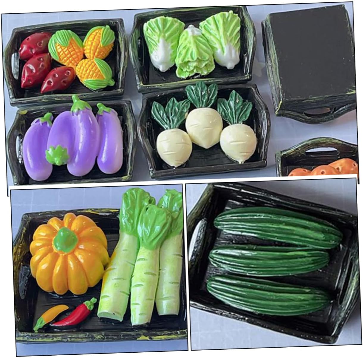 Decorazione per cestino in miniatura: il nostro cestino per verdure con simulazione di micro paesaggio può essere utilizzato per la casa delle bambole fai da te, molto decorativo e usato da molto tempo, per decorare il cestino in miniatura. Cestino in miniatura per casa delle bambole: questo mini accessorio per la casa è realizzato in resina stabile e robusta con pregevole fattura per dettagli realistici, verdure in miniatura. Modello di cestino in miniatura: questo set di decorazioni fai-da-te include una varietà di verdure, serve per aggiungere un tocco di fascino e un modello realistico di cestino per verdure in miniatura. Modello di cestino decorativo in miniatura: leggero e di piccole dimensioni, il set di cestini è facile da riporre e posizionare senza occupare molto spazio, cestino per verdure mini casa. Decorazione di verdure in miniatura: ogni verdura è meticolosamente realizzata per assomigliare alle verdure della vita reale, garantendo un'esperienza autentica, modello di cesto di verdure decorativo.