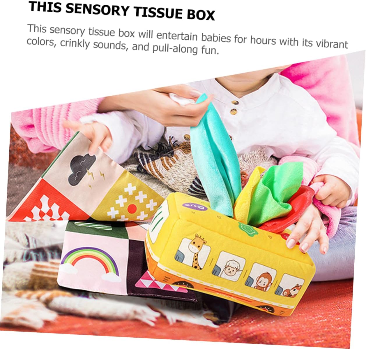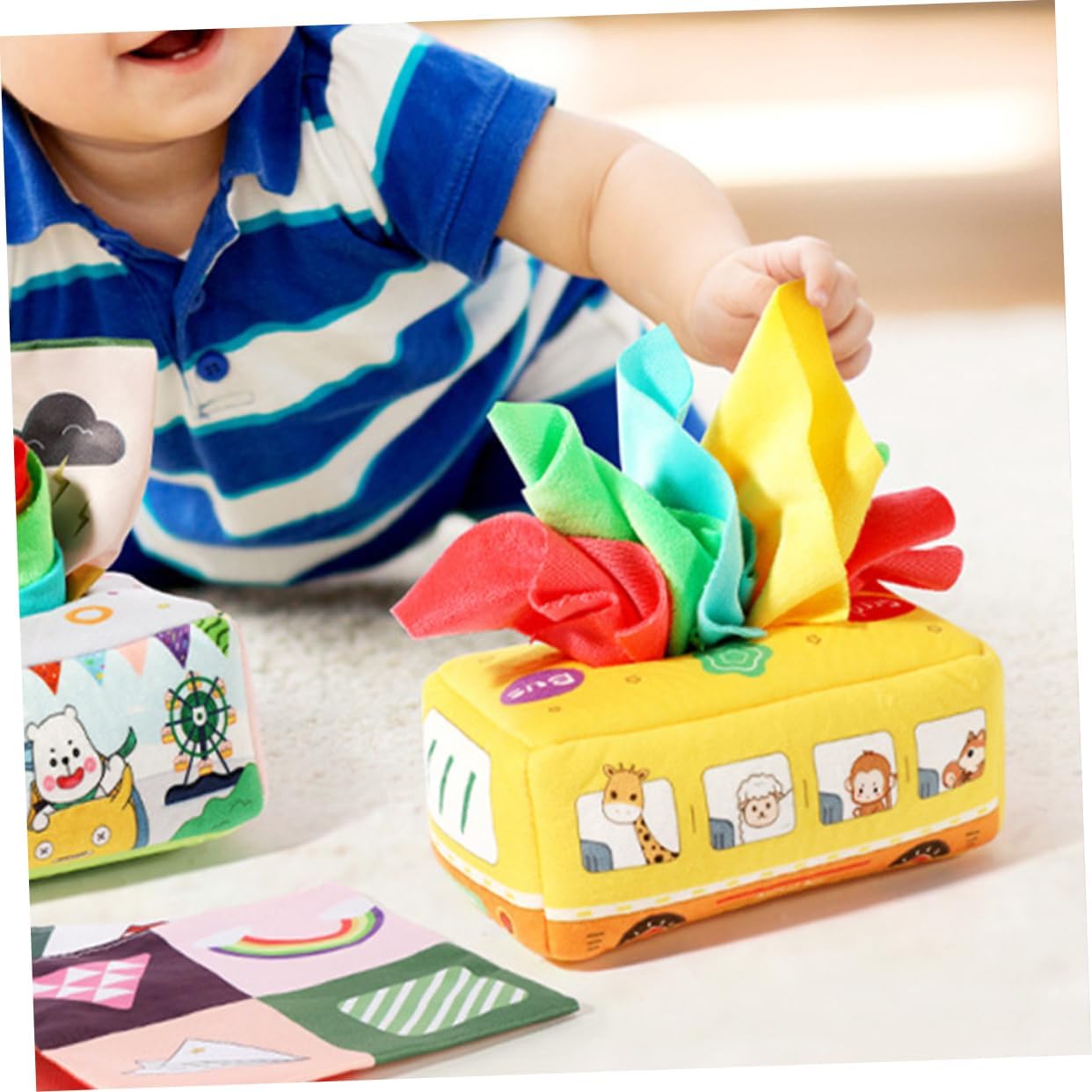 Montessori-: realizzato in tessuto, che è caratterizzato da stabilità e durata, molto liscio da usare, giocattoli di stoffa per neonati Sensoriale per: con questa scatola di fazzoletti puoi giocare a giochi interattivi genitore-figlio con i tuoi bambini, esercitarti con le mani e usare giocattoli di stoffa per i giocattoli di stoffa: lavabile e riutilizzabile, un buon modo per allenare le capacità motorie dei bambini, fazzoletti per tirare fuori i giocattoli di stoffa per neonati: design caratteristico e raffinato con forma a bus semplice e generosa, liscio, sensoriale per i bambini, giocattolo per tirare le fazzoletti: questa scatola di fazzoletti sensoriali intratterrà i bambini per ore con i suoi colori vibranti, un giocattolo in tessuto sensoriale indistruttibile