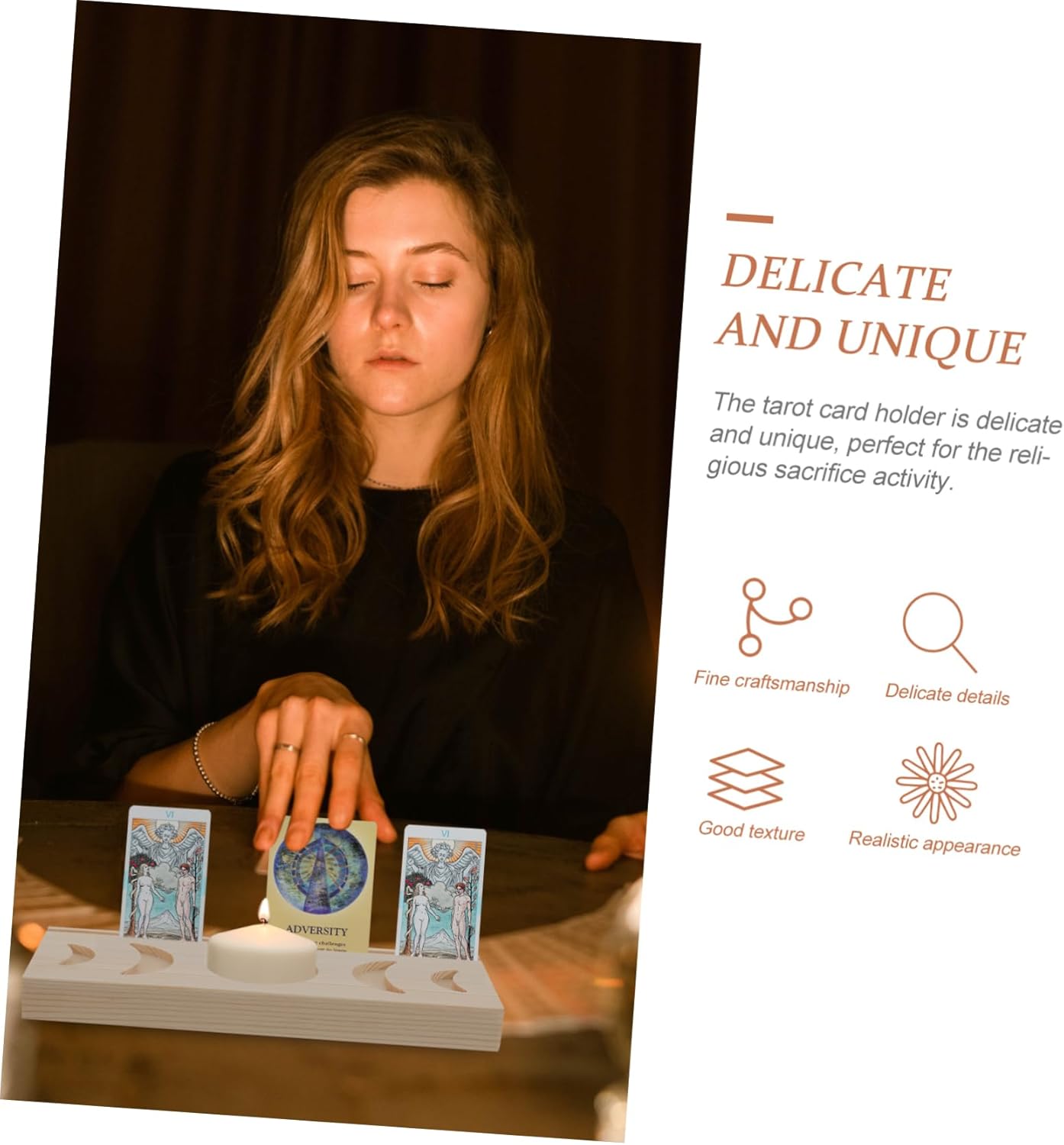 Espositore in legno: puoi usarlo per decorare la scena del tuo altare, piccolo e facile trasportare e riporre. Supporto per tarocchi con fasi lunari: il porta carte tarocchi ha una dimensione compatta, che consente di risparmiare spazio. Vassoio portagioie: può creare un'atmosfera misteriosa, perfetta per le attività religiose. Supporto per tarocchi in legno: il porta tarocchi è delicato e unico, perfetto per l'attività di sacrificio religioso. Biglietti di affermazione: realizzati in buon materiale di legno, che può resistere all'uso duraturo del display di carte in legno lunare.