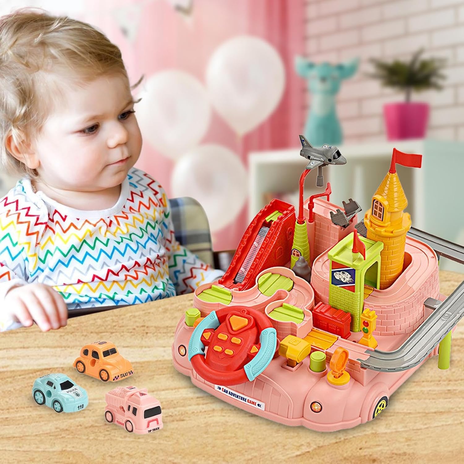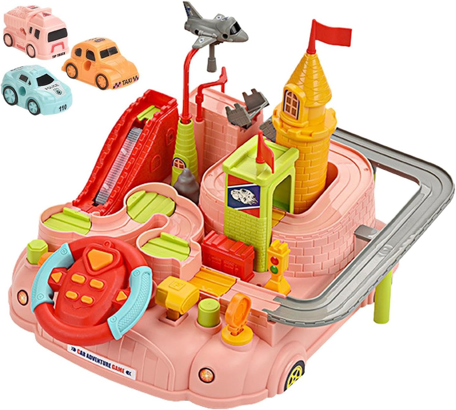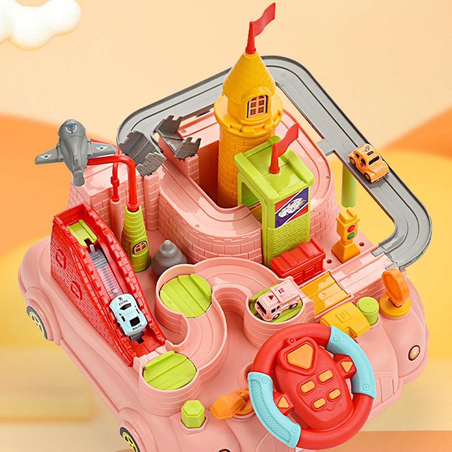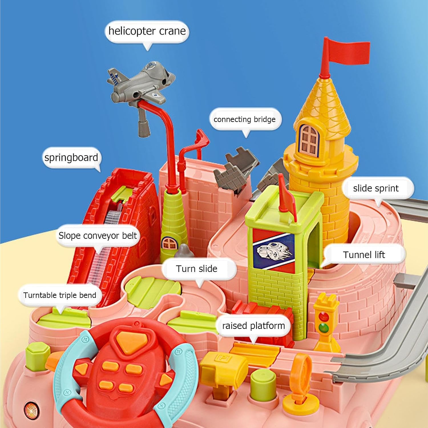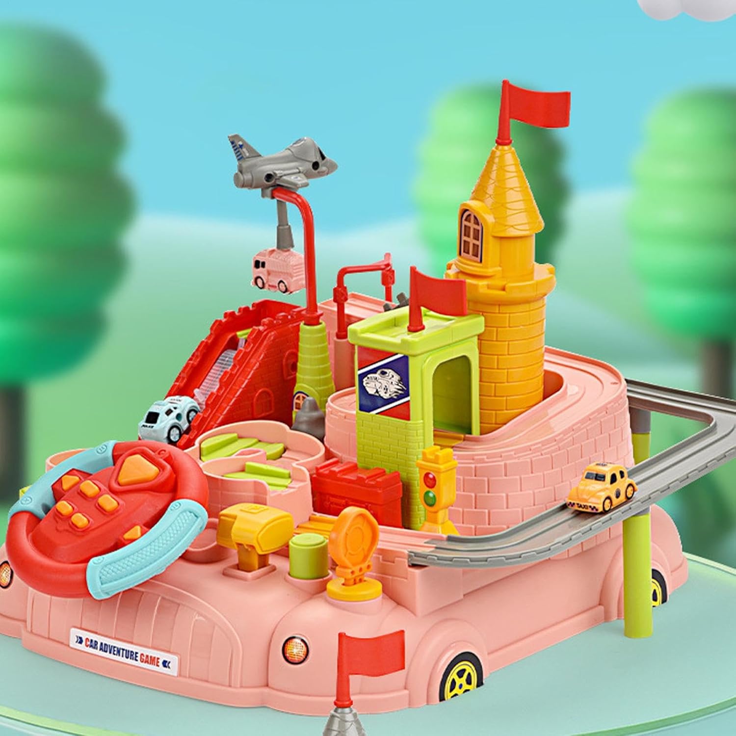 Servire a lungo: i giocattoli per auto pista realizzati in materiale ABS di alta qualità e base d'acqua, questo set di giochi per auto traccia garantisce ai tuoi bambini sicuri. La pista è ben realizzata con un design dei bordi arrotondati e angoli lisci lucidi, e non sono necessarie batterie. Migliorare le capacità dei bambini: lascia più livelli e migliora le capacità di coordinazione della risoluzione dei problemi e la coordinazione occhio-mano con il nostro kit di giochi per auto pista. Circuito da corsa per bambini In questo veicolo a collegamento meccanico ha diversi tipi di trasporto, tra cui taxi, auto, autobus e aerei, con più pulsanti per il controllo. Buono per il regalo: il set Track Car Play offre un'ottima opzione di gioco per e ragazze di età compresa tra 3+, in modo che possano creare corsi di gara più divertenti e stimolanti. Questo impressionante giocattolo per bambini migliora la relazione genitore-figlio perché le famiglie giocano insieme a casa, promuovono il legame e possono offrire un outlet creativo sia ai genitori che ai bambini. Padronanza nello sviluppo mentale: con questo gioco di auto traccia il tuo bambino può migliorare la sua intelligenza e abilità, sfidando ogni livello, guidando l'auto giocattolo per superare gli ostacoli ed esplorare la connessione meccanica della pista. Esercizio e creatività: segue le 8 diverse sfide del nostro set di gioco per auto 2 in 1 facilita il movimento nella coordinazione, le capacità operative e la creatività del tuo bambino. Incoraggia il gioco cooperativo e inizia la loro capacità di pensiero, portando a più divertimento rispetto ai set a una corsia.