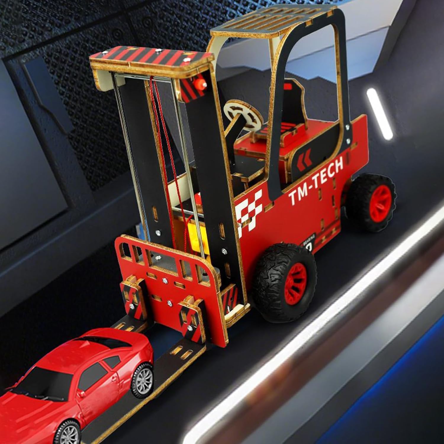TRACYE Carrello Elevatore Telecomandato Puzzle 3D in Legno,Fai da Te Giocattolo Scientifico,Strumento di Apprendimento Interattivo,Kit di Artigianato Educativo