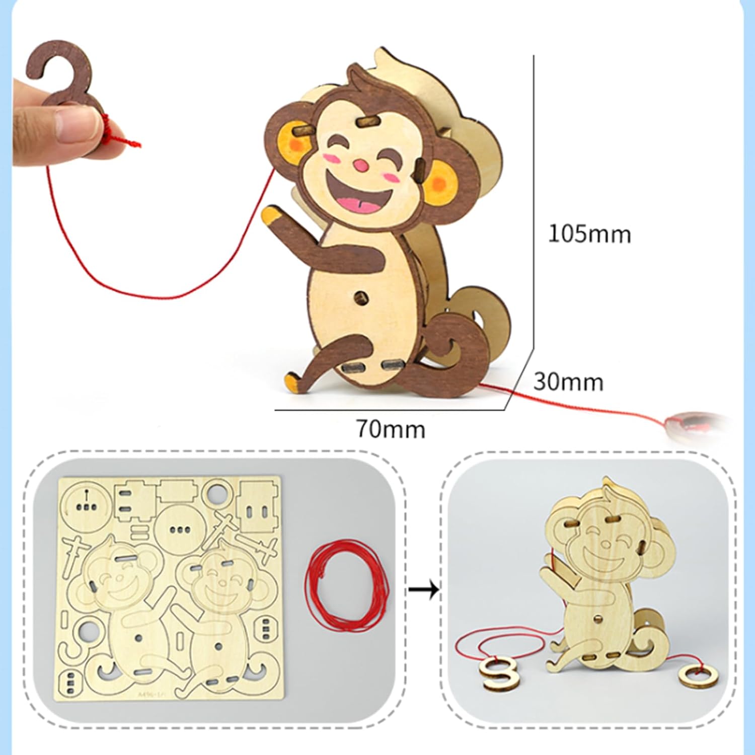 TRACYE Scimmia Che Si Arrampica sulla Corda Puzzle 3D in Legno,Fai da Te Giocattolo Scientifico,Strumento di Apprendimento Interattivo,Kit di Artigianato Educativo