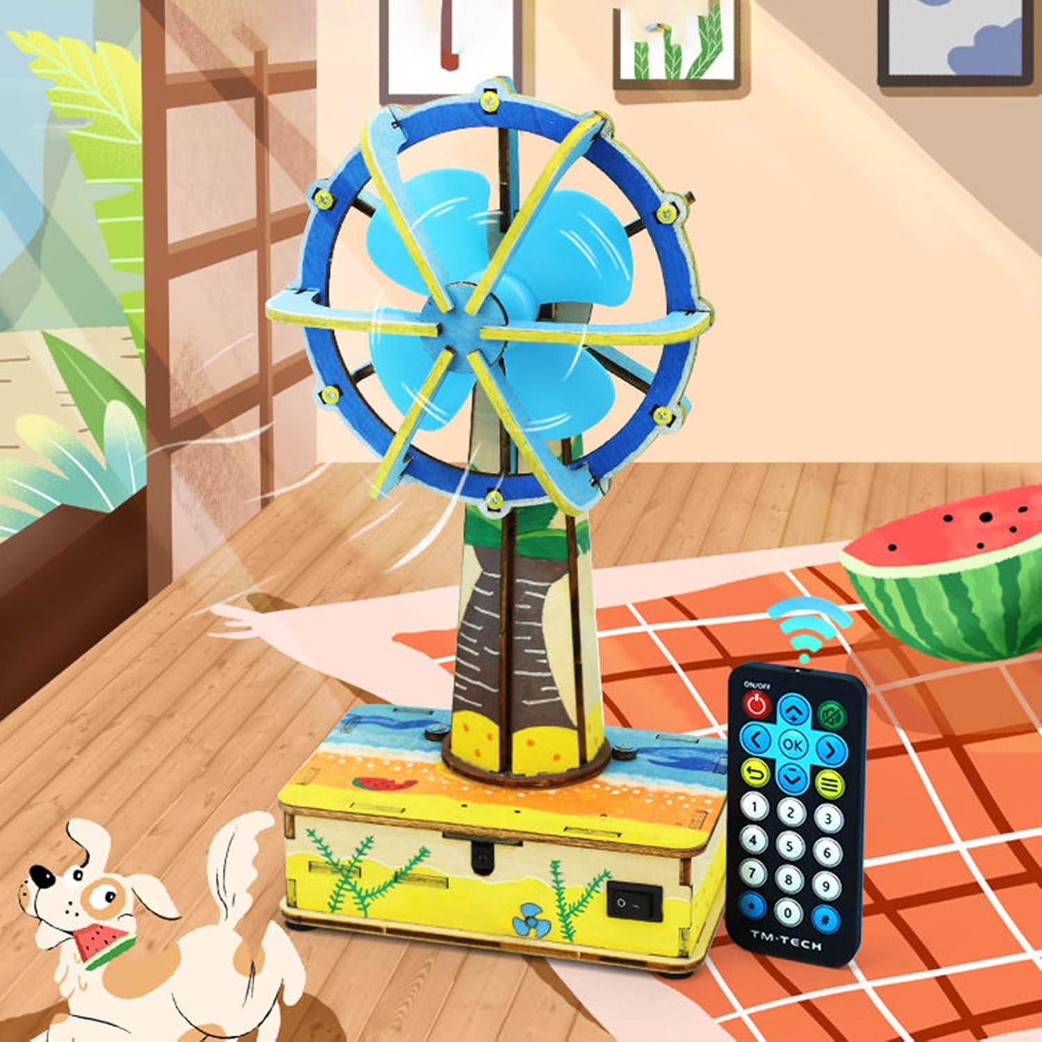 TRACYE Ventilatore con Telecomando a Infrarossi Puzzle 3D in Legno,Fai da Te Giocattolo Scientifico,Strumento di Apprendimento Interattivo,Kit di Artigianato Educativo
