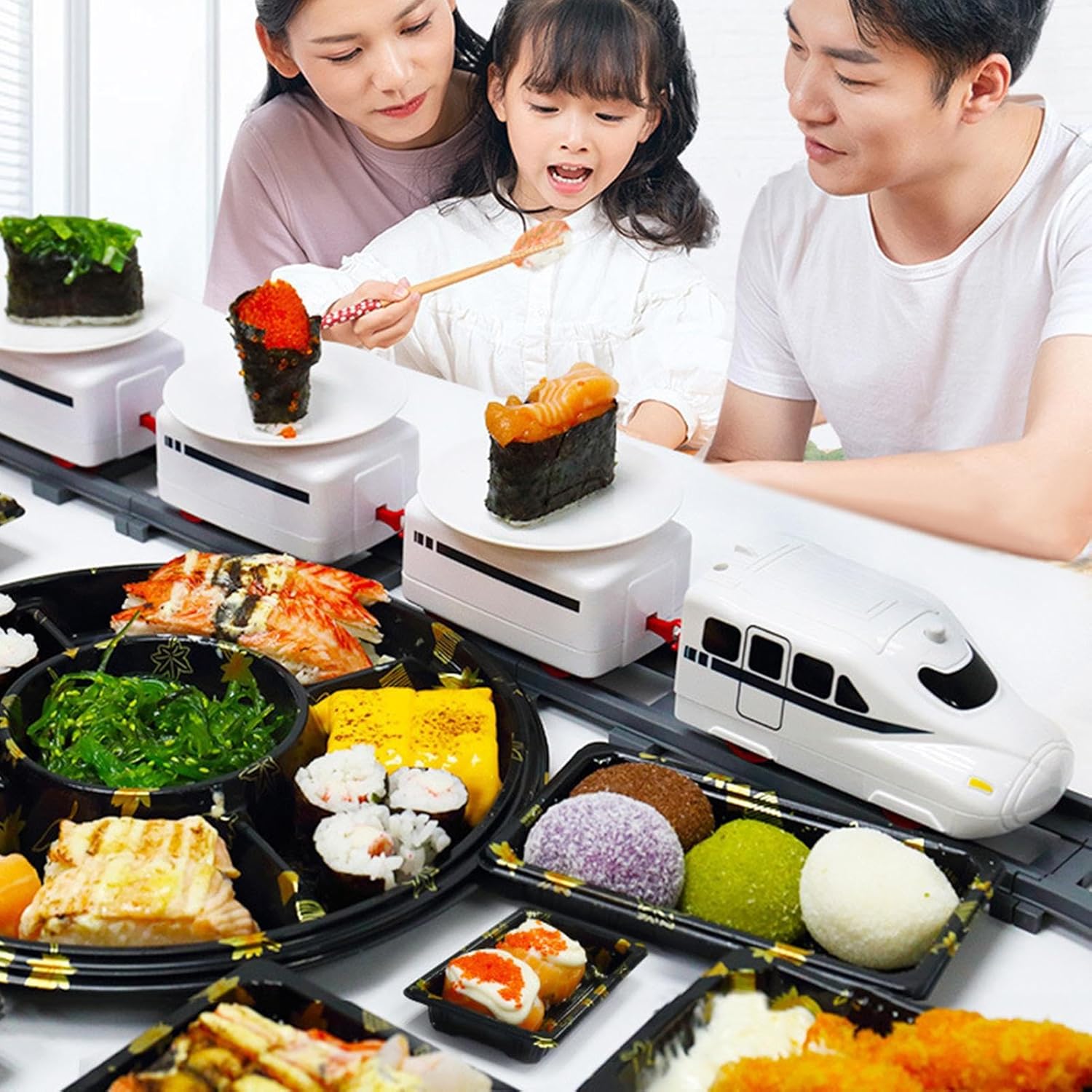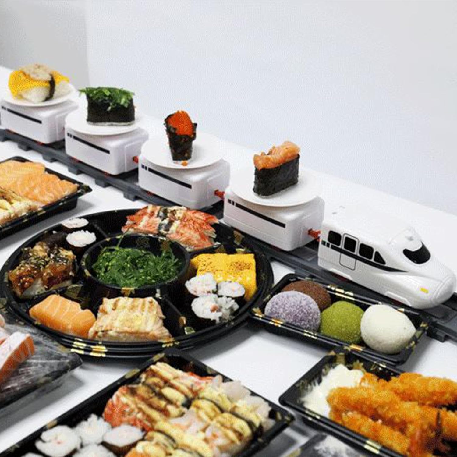 Matériau fiable : fabriqué en matériau ABS respectueux de l'environnement et sain, ce train à sushi est sûr et inoffensif, garantissant à votre enfant une expérience de jeu amusante. Le matériau est également robuste et durable, ne blesse pas les mains des et n'a aucune odeur. Apparence réaliste : ce jouet de train à sushi a une apparence réaliste qui imite les vrais restaurants de sushi. Il peut développer l'attention et la capacité de réflexion des , stimuler leur créativité et leur imagination et les attirer avec des couleurs vives. Pratique à installer : créez votre propre train à sushi avec juste vos mains. Les pièces sont faciles à positionner et à assembler, et vous n'avez besoin d'aucun outil ni vis. Usage général : ce train à sushis n'est pas seulement un jouet électrique pour jouer, mais aussi un tapis roulant amusant et pratique que vous pouvez utiliser pour déguster des sushis avec votre famille et vos amis. Ce produit est idéal pour les amateurs de sushi qui souhaitent pimenter leurs soirées. Large gamme d'utilisations : ce train à sushi est une merveilleuse surprise pour vos amis et votre famille. Il est parfait pour différentes occasions, comme les anniversaires, Pâques, Noël et la rentrée scolaire. Le train à sushi est doté d'un superbe emballage extérieur qui ravira ceux qui le verront.