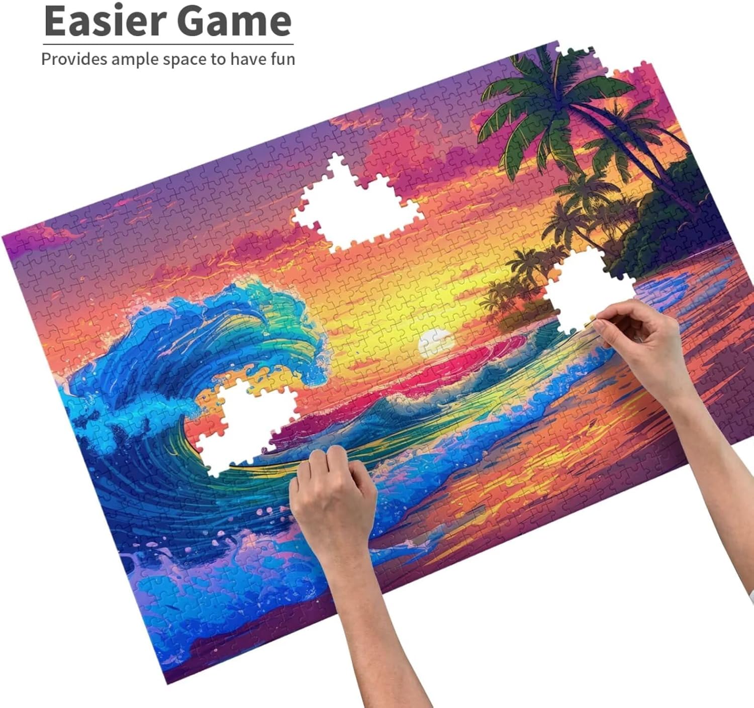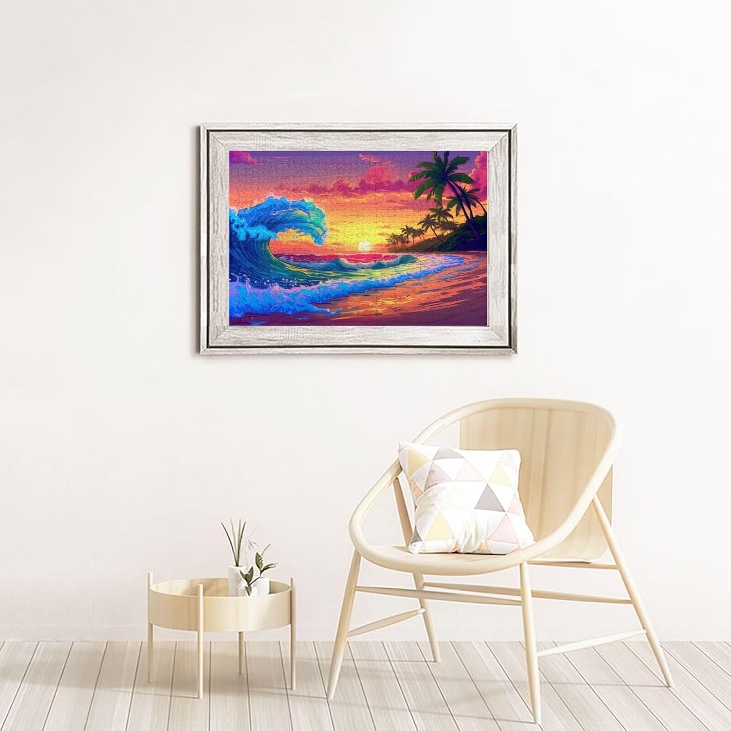 Tramonto Puzzle 1500 Pieces Spiaggia Puzzle Adulte Principiantecon Scatola Regalo, DIY Puzzleinterattivo di Familiare Impegnativo Gioco, Stress Relief Home Wall Decor Art Regalo Uomo 57x87cm-z1723