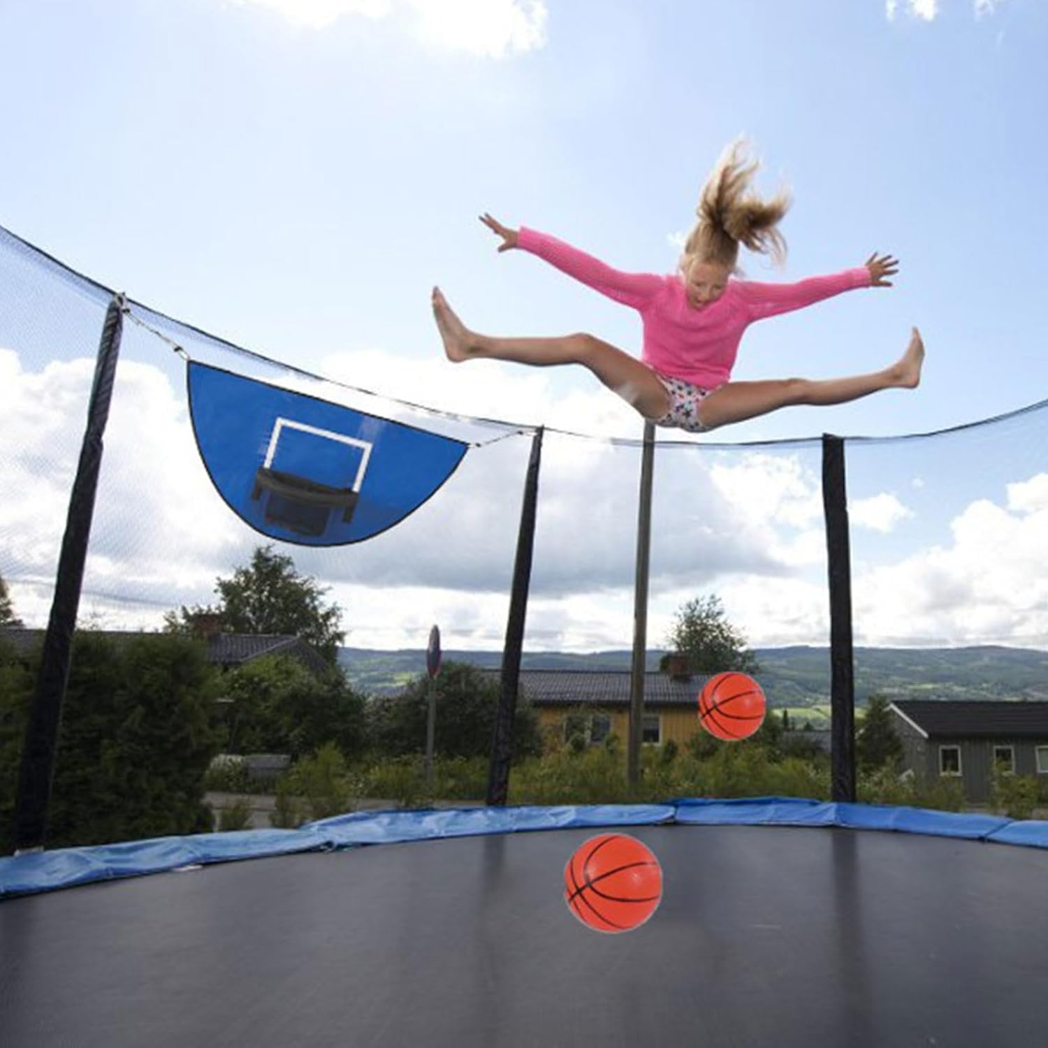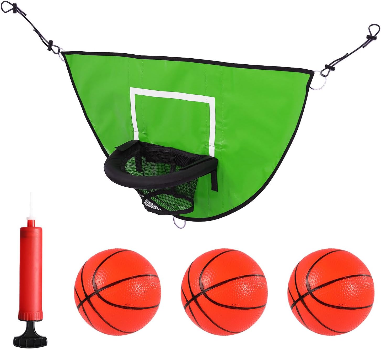 Migliorare la vostra esperienza di trampolino con questo grande set di basket con caratteristiche Breakaways RIMS per un sicuro PVC dunking Questo set per la ricerca di un gioco attivo adatto alla famiglia e incarica bambini e adulti allo stesso modo con il suo design con bordi protettivi e materiali per la cura di saltare liberamente La tavola Rebounds da 37,8 x 19,69 pollici viene fornita con palline, pompe e cinghie regolabili per un fissaggio sicuro ai poli standard del trampolino senza attrezzi Combinando sicurezza ed eccitazione, il meccanismo rinforzato Breakaways previene lesioni e mantenendo il gameplay autentico palloni da basket su trampolini compatibili Trasforma i trampolini Backyard in arene sportive dinamiche durante riunioni familiari, feste all'aperto o routine di fitness casual con questo accessorio multiuso da basket