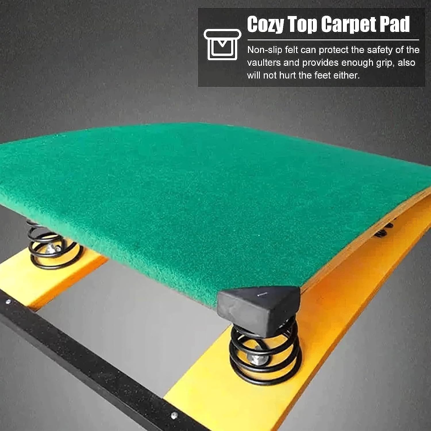 Legno duro e spesso, feltro antiscivolo di alta qualità sulla superficie, molla ispessita in acciaio al manganese all'interno, forte capacità portante, nessuna deformazione, nessuna piastra in acciaio antiruggine fissa. I nostri trampolini sono realizzati con assi di legno duro con forte capacità portante, nessuna deformazione, liscia e senza sbavature, facile da pulire; perfetto in qualsiasi condizione atmosferica, adatto for interni ed esterni. La parte superiore del pannello è in feltro antiscivolo for proteggere i volteggiatori e fornire una presa sufficiente. Inoltre, la superficie confortevole non farà male ai piedi. La molla spessa ad alta tenacità ha super elasticità e rimbalzo e durevole, risparmia energia for i ginnasti e salta più in alto. Questo trampolino curvo è perfetto per l'allenamento, le gare, il divertimento quotidiano ed è ideale per case, scuole, scantinati, sale giochi, palestre, centri sportivi, club sportivi e altri scenari.