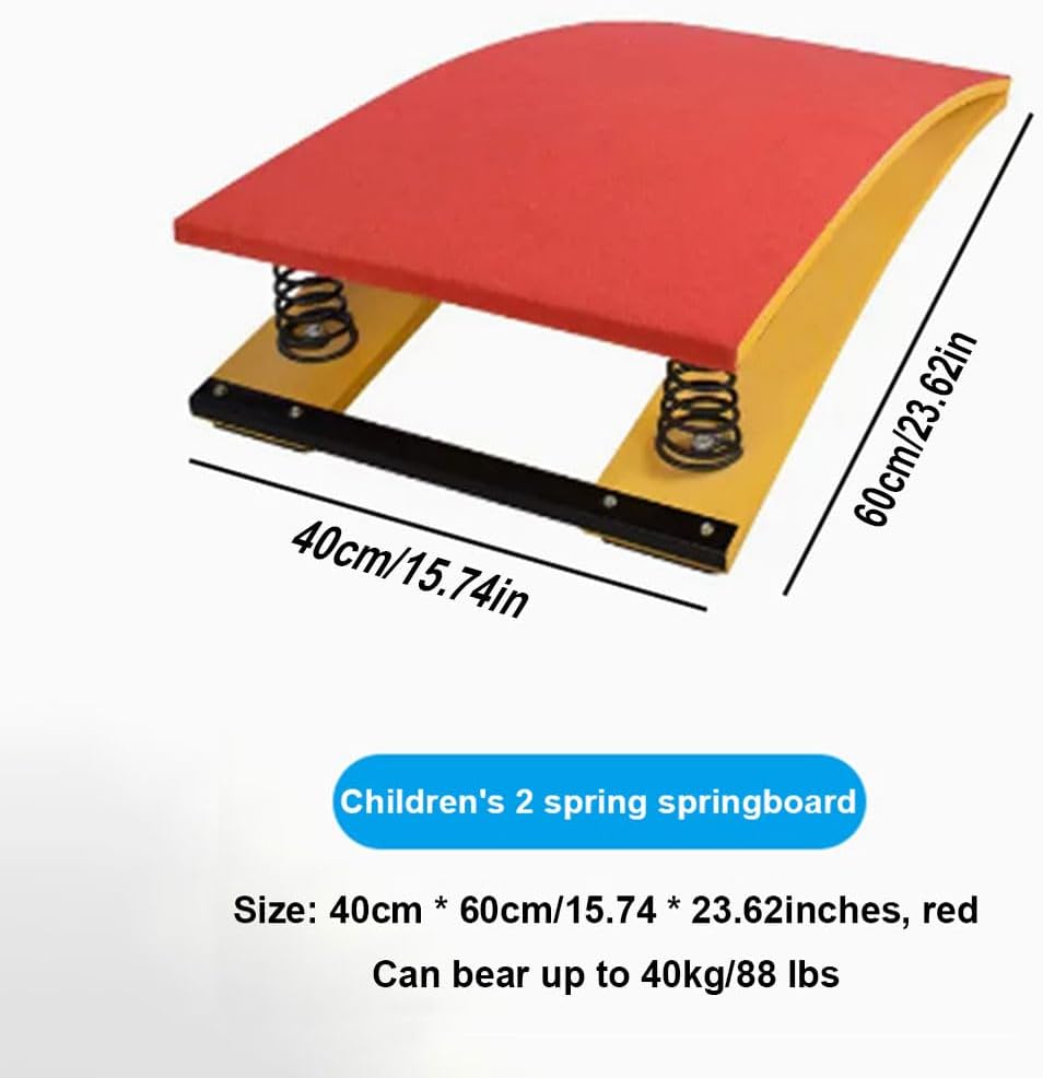 Attrezzatura da ginnastica: è un ausilio per il salto negli eventi di ginnastica, aiuta gli atleti ad aumentare l'altezza del salto e supporta i movimenti tecnici complessi negli sport aerei. Tavola in legno spesso: la robusta tavola a molla in legno è realizzata in legno duro spesso per una maggiore capacità portante e una lunga durata; la parte inferiore è dotata di un cuscinetto antiscivolo. Molla ad alta tenacità: questo trampolino sportivo è realizzato con una molla ad alta tenacità, che ha una buona elasticità, non si arrugginisce e non si deforma facilmente, è stabile e sicura, offre una migliore sensazione di rimbalzo, consente di risparmiare forza fisica ed energia e di saltare più in alto. Feltro superiore antiscivolo: la superficie del trampolino è rivestita in feltro antiscivolo e resistente all'usura, che consente ai piedi di mantenere una buona presa durante il salto, ed è sicuro e anticaduta. Non pungerà i piedi anche se sei a piedi nudi. Ampia applicazione: questo trampolino è disponibile in diverse misure ed è adatto a bambini, adolescenti e adulti. Resistente, perfetto per la casa, la barra di ginnastica, la sala giochi, i percorsi a ostacoli, la palestra di casa, ecc.