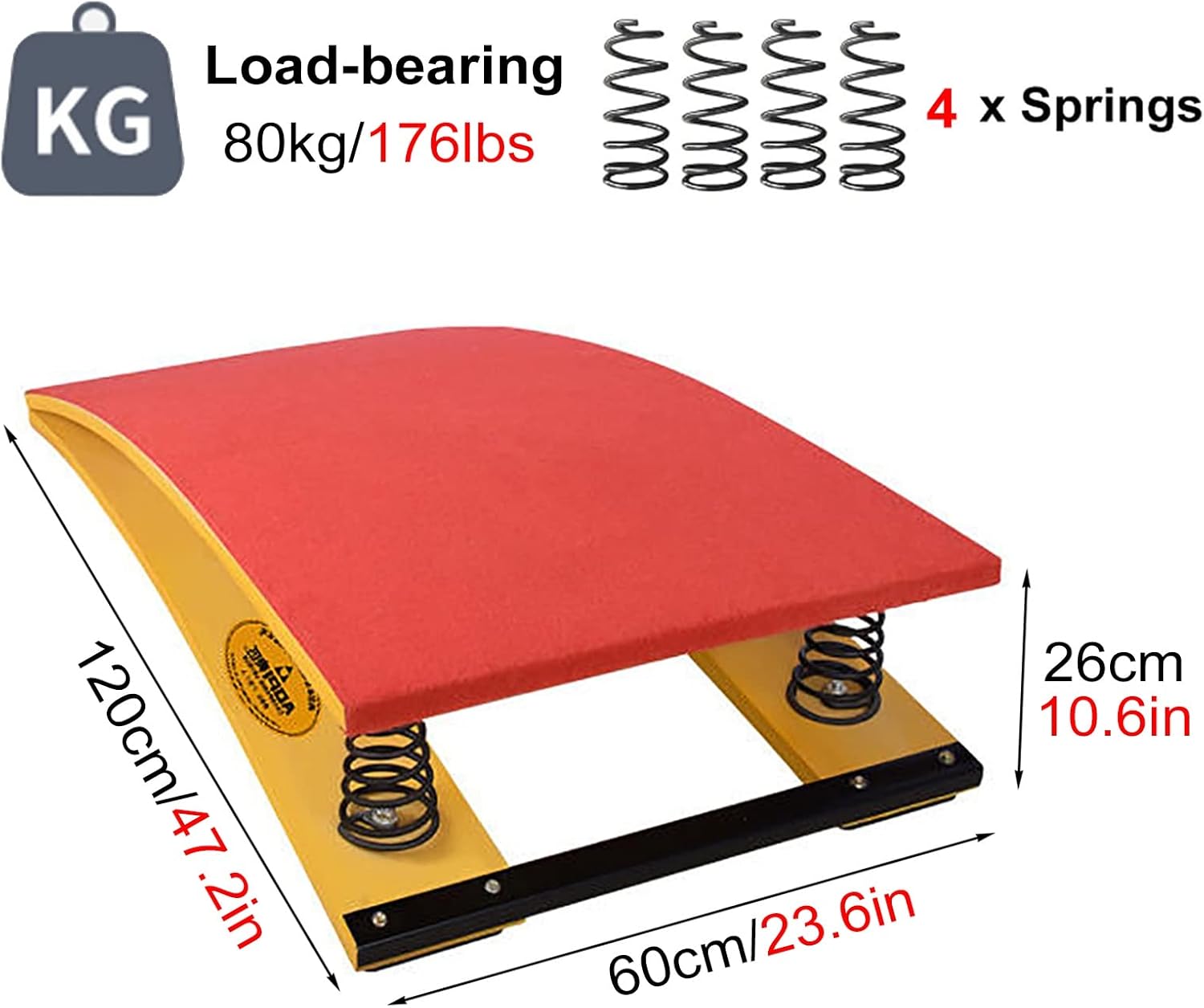 【Trampolino da ginnastica durevole】Il nostro trampolino è realizzato in legno massello, con una forte capacità portante, nessuna deformazione, liscio e senza sbavature, facile da pulire; 【Tavola di supporto per il salto】120 cm (47,2 pollici) di lunghezza, 60 cm (23,6 pollici) di larghezza, 26 cm (10,2 pollici) di altezza dall'estremità più alta. Capacità di carico: 80 kg (176 libbre). 【Molle elastiche in acciaio】Molla ad alta tenacità e spessore elevato, elastica e resiliente. Sicura, stabile e senza distorsioni. Risparmia energia per i ginnasti e salta più in alto. 【Tappeto superiore antiscivolo】Il comodo tappeto superiore antiscivolo consente ai piedi di aderire bene durante il salto e offre anche una superficie confortevole. Non ti farà formicolare i piedi, anche se sei a piedi nudi. 【Ampiamente utilizzato】 Trampolino da ginnastica resistente, perfetto per interni ed esterni, casa, bar per ginnastica, sala giochi, percorsi a ostacoli, palestra di casa, cantina, ecc.