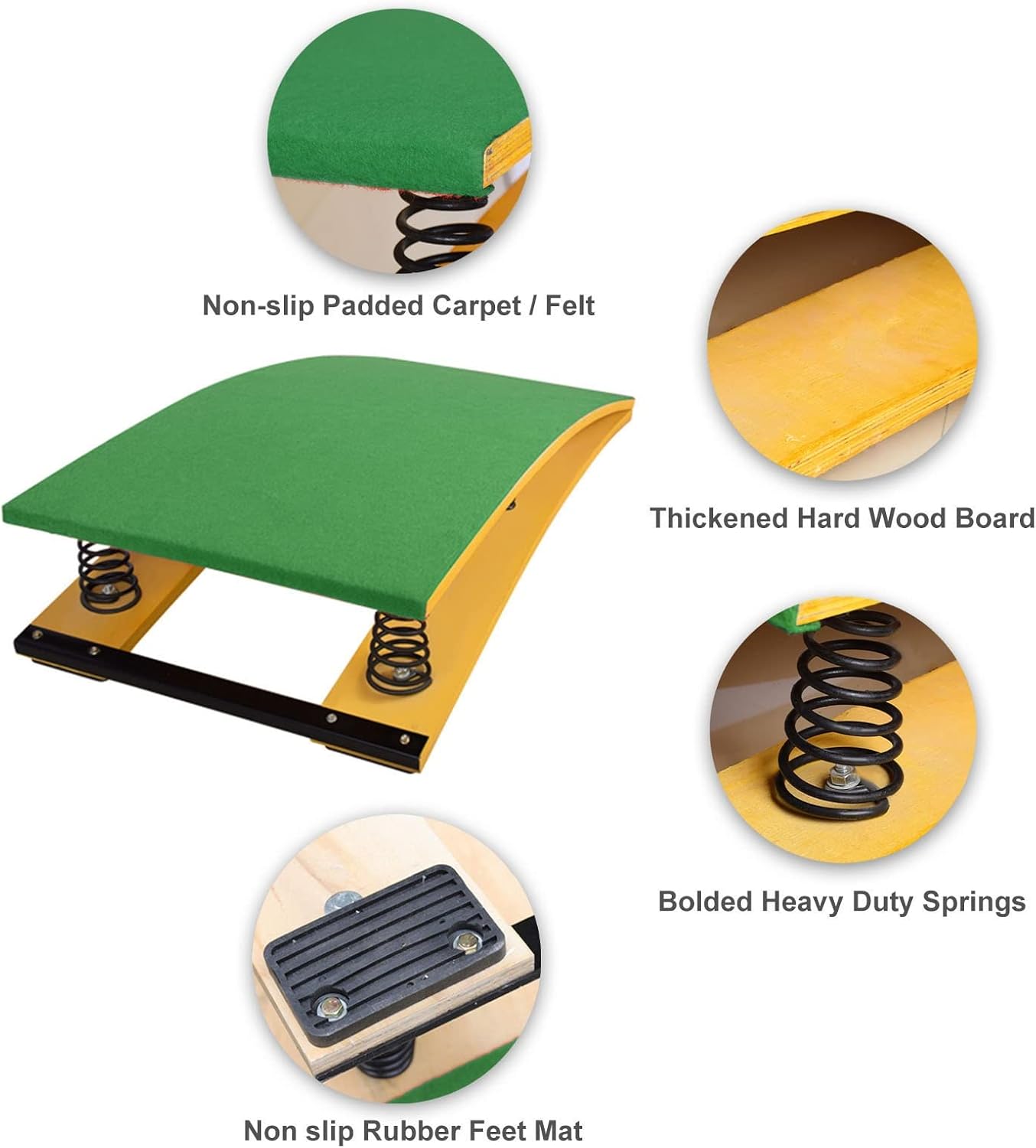 [Resistente e stabile] Il nostro trampolino è realizzato in legno massello, con una forte capacità portante, nessuna deformazione, liscio e senza sbavature, facile da pulire; perfetto in qualsiasi condizione atmosferica, adatto per interni ed esterni. [Comodo per i piedi nudi] Questi trampolini sono rivestiti in feltro antiscivolo imbottito. Questo consente ai piedi di aderire bene durante il salto e fornisce anche una superficie confortevole. Sono ecologici e facili da pulire. [Progettato per i bambini] Carico massimo: 65 kg/143 libbre. Questo Powerboard è perfetto per lezioni di ginnastica in età prescolare, per migliorare le abilità di volteggio, per salire sulle parallele asimmetriche, per esercitarsi negli atterraggi, per Pilates, yoga, arte fisica o stretching. [4 Molla in acciaio per impieghi gravosi] Molla ad alta tenacità e ispessita, elasticità e resilienza, sicura e durevole, reattiva e riduce notevolmente l'affaticamento degli atleti. Consente un supporto superiore e un utilizzo ottimale. [Trampolino Junior] Dimensioni: 50 cm (19 pollici) di larghezza, 80 cm (31 pollici) di profondità, 20 cm (8 pollici) di altezza dall'estremità più alta. Perfetto per bambini e ragazzi che si allenano a casa, a scuola, in palestre, piccole sale giochi, centri di ginnastica, club sportivi e palestre, ecc.