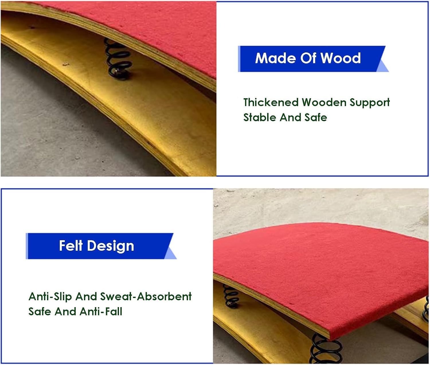 TRAMPOLINO PER GINNASTICA: il trampolino per ginnastica junior è realizzato in legno duro, con feltro sulla superficie e molla ispessita all'interno, forte capacità portante, nessuna deformazione, con piastra in acciaio, adatto a qualsiasi scena, adatto per interni ed esterni DESIGN IN FELTRO SUPERFICIALE: la superficie del trampolino da ginnastica è ricoperta di feltro, in modo che i piedi possano mantenere una buona presa durante il salto, sicuro e anticaduta e proteggerci il più possibile, anche se sei a piedi nudi, non ti sentirai a disagio CURVA ERGONOMICA: il trampolino si conforma alla curvatura ergonomica in modo che non si verifichino incidenti di sicurezza durante l'uso e il booster di ribaltamento per ginnastica ha un'elevata elasticità, che riduce notevolmente il consumo fisico degli atleti MOLLA AD ALTA RESISTENZA: il trampolino adotta molle ad alta resistenza, che hanno una buona elasticità, non sono facili da arrugginire e deformare, stabili e sicure, risolvono le tue preoccupazioni, ti offrono un migliore senso di rimbalzo, risparmiano forza fisica ed energia e saltano più in alto RESISTENTE AL CARICO: il trampolino è adatto ai giovani atleti e può sopportare un peso compreso tra 50 e 120 kg. È progettato per gli amanti dello sport ed è robusto e stabile. Il più possibile, anche se sei a piedi nudi, non ti sentirai a disagio.