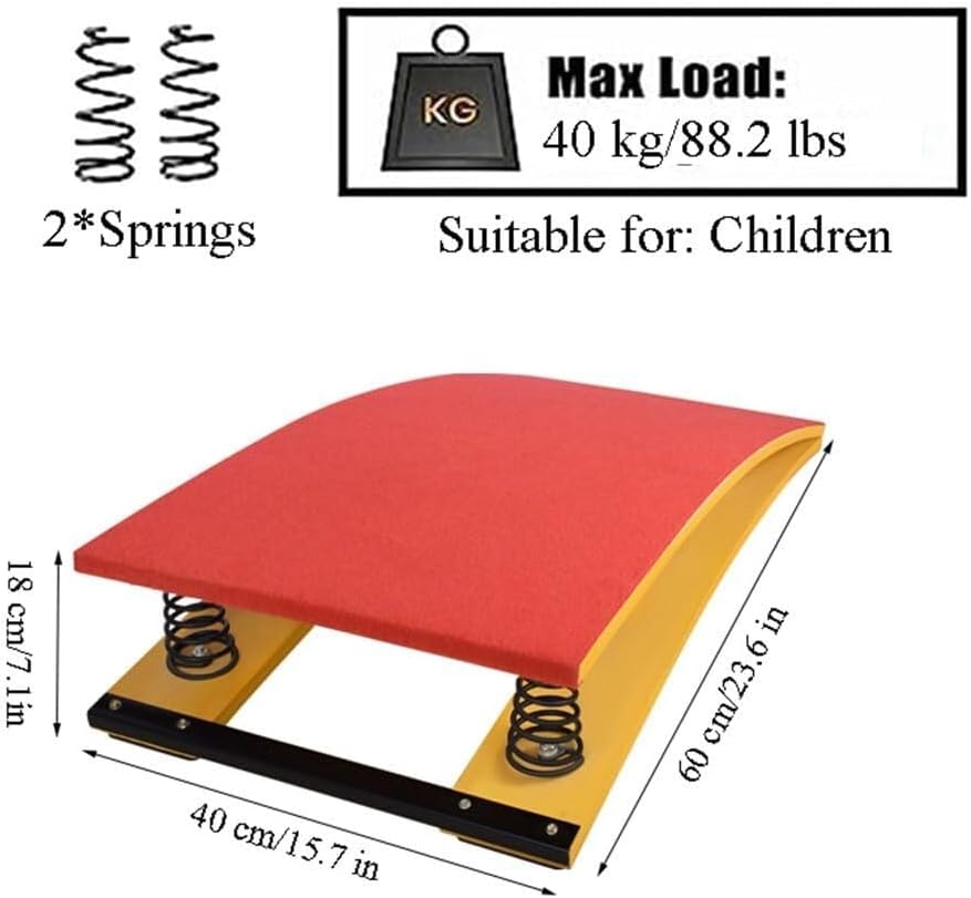 Costruzione: realizzata in legno duro ispessito con un sistema di molle ad alta elasticità per la massima stabilità, durata e sicurezza. Superficie in feltro antiscivolo: la superficie superiore assorbe il sudore, è antiscivolo e facile da pulire, per un utilizzo sicuro e confortevole. Diverse misure e colori: disponibili nelle misure per bambini e adulti con 4, 7 o 9 molle per soddisfare tutte le età e le esigenze di allenamento. Design ergonomico e sicuro: il trampolino pesante è conforme all'ergonomia, riducendo lo sforzo del piede e l'affaticamento dell'atleta durante salti e capriole ripetuti. Utilizzo versatile: perfetto per casa, palestra, scuola, centri di allenamento sportivo, club e intrattenimento; adatto per ginnastica, percorsi a ostacoli e allenamento fisico.