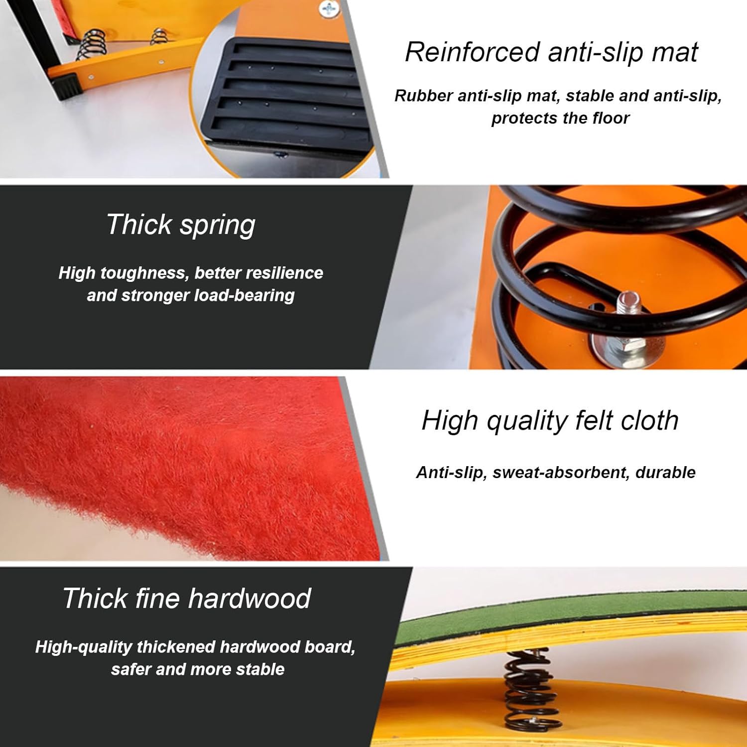 Robusto e resistente: la selezione di materiali di alta qualità e l'uso di legno duro spesso rendono il trampolino più stabile, sicuro e resistente. La superficie del trampolino è rivestita in feltro di alta qualità, antiscivolo, assorbente, sicuro e facile da pulire. Molla ad alta tenacità: questo trampolino sportivo è realizzato con una molla ad alta tenacità, che ha una buona elasticità e non si arrugginisce o si deforma facilmente, offrendo una migliore sensazione di rimbalzo. Il cuscinetto in plastica con scanalature antiscivolo nella parte inferiore dei trampolini curvi portatili è sicuro e non si muove. Tappetini antiscivolo e gambe di supporto regolabili: la base del trampolino da ginnastica a molle ad alta resistenza è dotata di scanalature per evitare scivolamenti e spostamenti durante l'uso. Le gambe di supporto del trampolino da ginnastica per volteggio possono essere regolate in altezza per adattarsi all'intensità dell'esercizio del bambino. Design ergonomico: progettato specificamente per i giovani ginnasti che si allenano a casa, questo rialzo per salti mortali offre un'esperienza di allenamento sicura e di supporto. Che si tratti di salire sulle sbarre o di provare i movimenti di discesa, offre la piattaforma ideale per i bambini per eccellere e progredire nel loro percorso di ginnastica. Ampia gamma di applicazioni: il trampolino per ginnastica per bambini è adatto per trampolini da ginnastica per impieghi gravosi a casa, in palestra, nei campi di allenamento professionali, nelle palestre, nelle scuole, ecc. Che tu sia un atleta professionista, un appassionato di fitness o un allenatore di allenamento fisico per bambini, salto in alto, salto in lungo, puoi scegliere.
