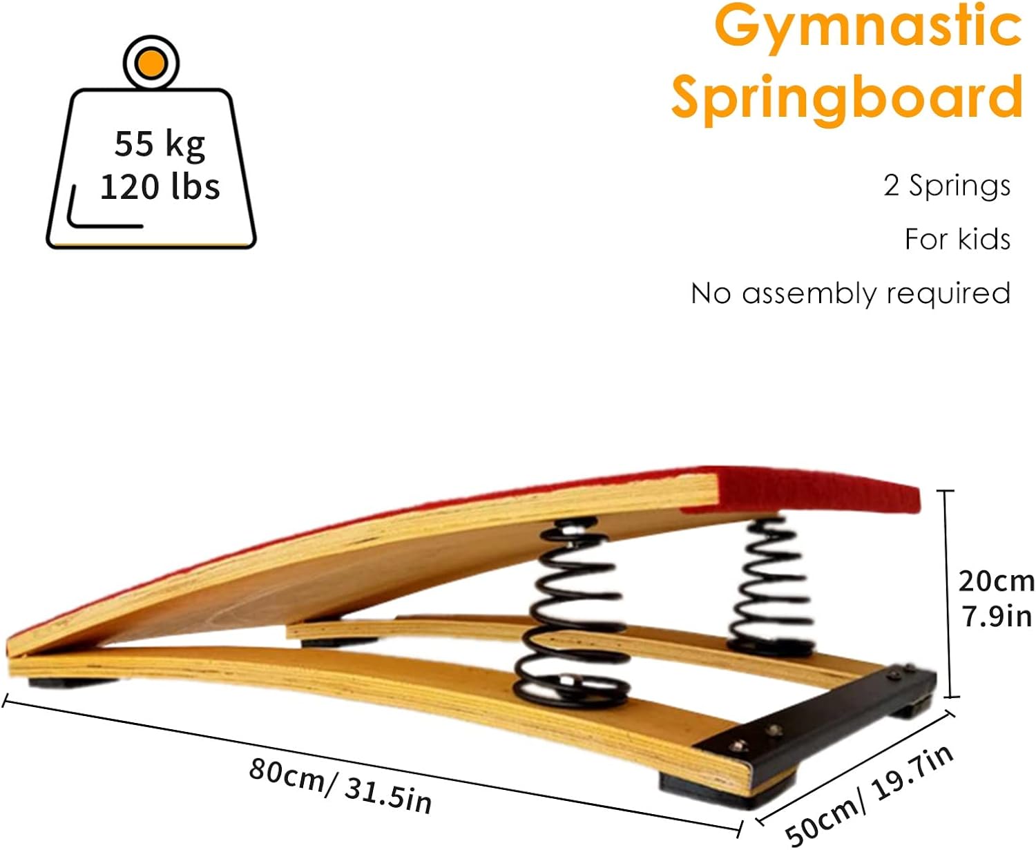 【Legno massello spesso】Il trampolino per ginnastica è realizzato in legno massello spesso per una capacità portante superiore e una lunga durata, ripetutamente testato senza danni. 【Molle in acciaio per impieghi gravosi】L'elevata tenacità e le molle robuste consentono un'elasticità superiore, senza distorsioni e ruggine, offrendo sicurezza e stabilità. 【Feltro antiscivolo e resistente all'usura】 Il pannello principale adotta un cuscinetto in feltro antiscivolo, per prevenire efficacemente il pericolo causato dallo scivolamento. Nel frattempo, fornisce una superficie e una presa comode per i saltatori. 【Attrezzatura multiuso】Utilizza il trampolino per esercitarti negli atterraggi e migliorare le tue abilità di volteggio, oppure salta sulle barre orizzontali come allenatore di montaggio per barre asimmetriche e utilizzalo nell'allenamento atletico. 【Realizzato per l'infanzia】Un'ottima attrezzatura per accompagnare i tuoi bambini nel processo di crescita e allenamento a casa, a scuola e per favorire lo sviluppo delle ossa e della forma del corpo, inoltre, aiuta i tuoi bambini a sviluppare sicurezza e coraggio.