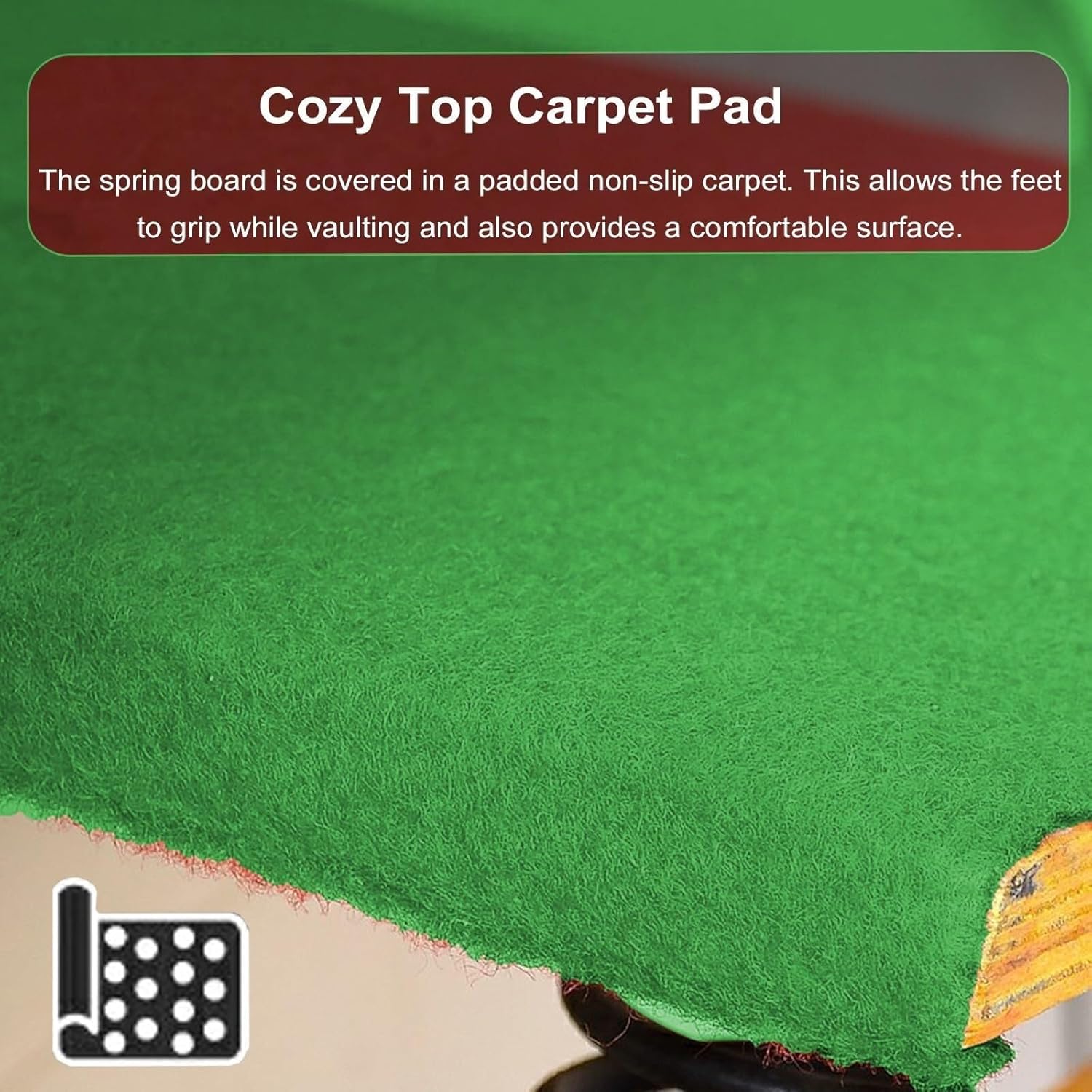 Costruzione in legno duro: realizzata in legno massello con superficie liscia e ruvida per una lunga durata e un'elevata capacità di carico. Molle elastiche in acciaio: sono dotate di molle in acciaio ispessite e ad alta resistenza per una maggiore elasticità, garantendo un rimbalzo e una stabilità migliori per i ginnasti. Superficie in feltro antiscivolo: il tappeto superiore è progettato con proprietà antiscivolo, garantendo un appoggio sicuro e comfort durante il salto, anche a piedi nudi. Attrezzatura versatile per l'allenamento: ideale per esercitarsi nel volteggio, nella discesa e in altre tecniche ginniche. Perfetta per palestre domestiche, scuole o percorsi a ostacoli. Pronto all'uso: non richiede montaggio. Basta disimballarlo e iniziare ad allenarsi. Ideale per adolescenti e adulti che desiderano migliorare le proprie abilità di ginnastica e fitness.