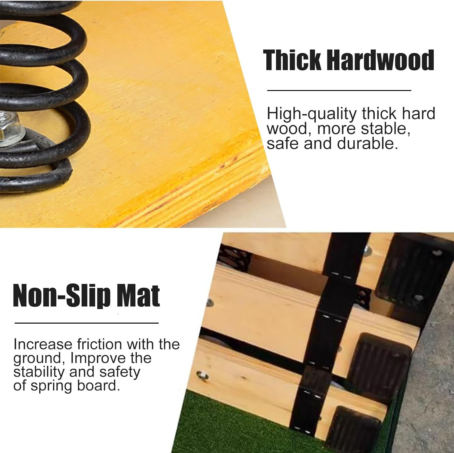 【Tavola da ginnastica in legno】: Legno duro spesso, feltro antiscivolo di alta qualità sulla superficie, molla interna in acciaio al manganese rinforzata. Disponibile in diverse dimensioni! 【Molla ad alta elasticità】: elevata tenacità ed elasticità della molla ispessita e resiliente, sicura e durevole, reattiva e riduce notevolmente l'affaticamento degli atleti. 【Feltro antiscivolo e resistente all'usura】: il pannello principale adotta un cuscinetto in feltro antiscivolo, per prevenire efficacemente il pericolo causato dallo scivolamento. Nel frattempo fornisce una superficie e una presa comode per i giocatori. 【Attrezzatura sportiva multiuso】: migliora la forma del corpo, rafforza i muscoli e migliora la coordinazione. Perfetta per casa, scuola, cantina, sala giochi, palestra, allenamento sportivo, ecc. 【Assistenza clienti】: Ci impegniamo a fornirti prodotti di alta qualità. In caso di problemi, non esitare a contattarci: ti risponderemo e risolveremo il problema entro 24 ore.