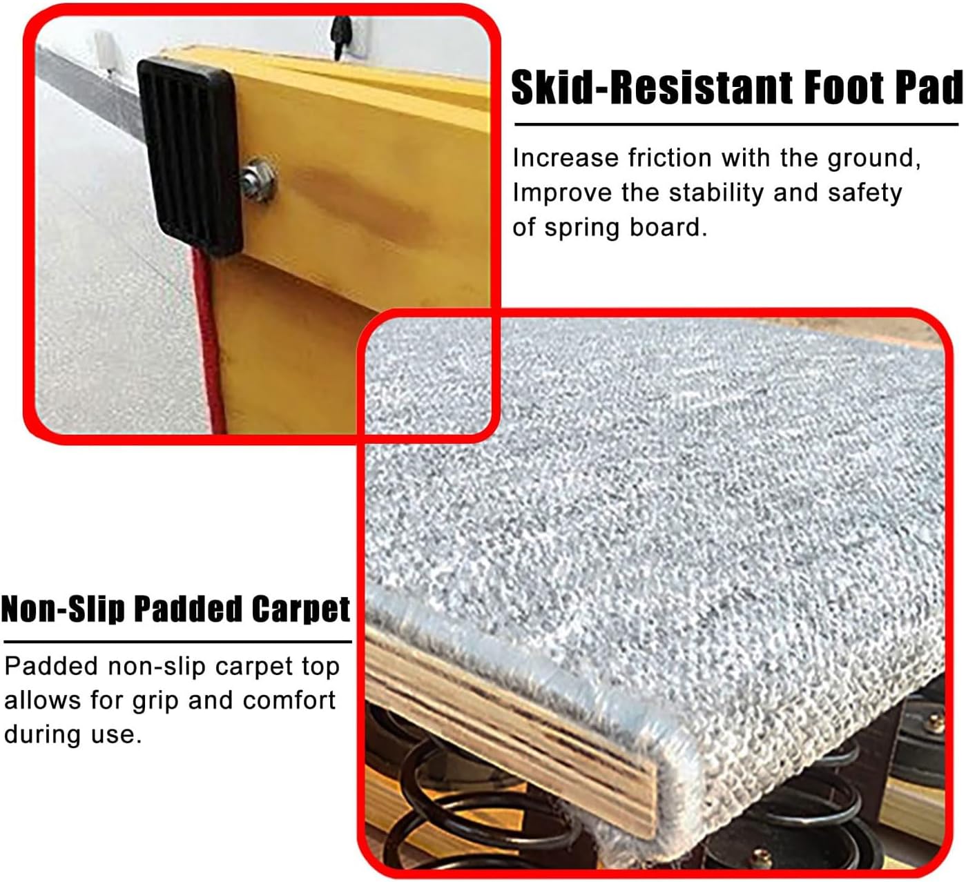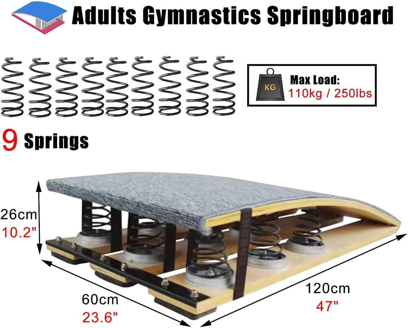 Trampolino da competizione: questo trampolino da competizione è adatto sia ai ragazzi che agli adulti! Le specifiche e le proprietà sono progettate secondo gli standard delle competizioni, quindi può essere utilizzato in palestra o a casa. Carico 110 kg / 250 libbre. 9 Molle ad alta elasticità: le molle spesse ad alta tenacità hanno un'elasticità e una resilienza extra, sono sicure e consentono un supporto superiore e un utilizzo ottimale. Molle in acciaio ispessito: molla interna in acciaio al manganese ispessita, elevata capacità portante, forte elasticità, nessuna deformazione, piastra in acciaio fissata antiruggine. Progettato per adulti: questo trampolino è ottimo come attrezzo per salire sulle parallele asimmetriche o per esercitarsi negli atterraggi, oppure per i corsi di ginnastica prescolare o per migliorare le tecniche di volteggio a casa. Ampiamente utilizzato: trampolino da ginnastica resistente, perfetto per la casa, la barra di ginnastica, la sala giochi, i percorsi a ostacoli, la palestra di casa, il seminterrato, ecc.
