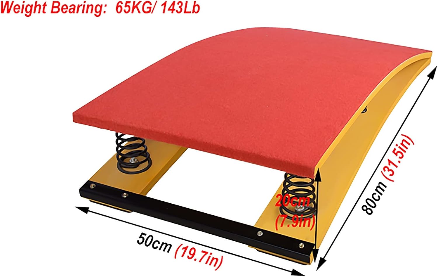 Materiale durevole e sicuro: realizzato in legno massello di alta qualità, resistente, impermeabile e resistente all'umidità, non si rompe facilmente. Il tappetino antiscivolo imbottito sulla parte superiore garantisce presa e comfort durante l'uso. 【Tavola elastica per allenamento junior】Dimensioni: 50 x 80 x 20 cm (L x P x A). Carico massimo: 55 kg; 65 kg. Perfetto per i bambini che si allenano a casa. 【Molle in acciaio ispessito】Molla interna in acciaio al manganese ispessito, elevata capacità portante, forte elasticità, nessuna deformazione, nessuna piastra in acciaio arrugginita fissata. 【Progettato per i bambini】Questo trampolino è ideale come trainer per il montaggio asimmetrico della barra o per esercitarsi negli atterraggi in discesa, o per lezioni di ginnastica prescolare o per migliorare le capacità di salto a casa. 【Per molte occasioni ideali】Le specifiche e le proprietà sono progettate secondo gli standard dei bambini, quindi possono essere utilizzate nelle lezioni di ginnastica prescolare, nelle piccole sale giochi, nei percorsi a ostacoli, a scuola, a casa e in altri luoghi.